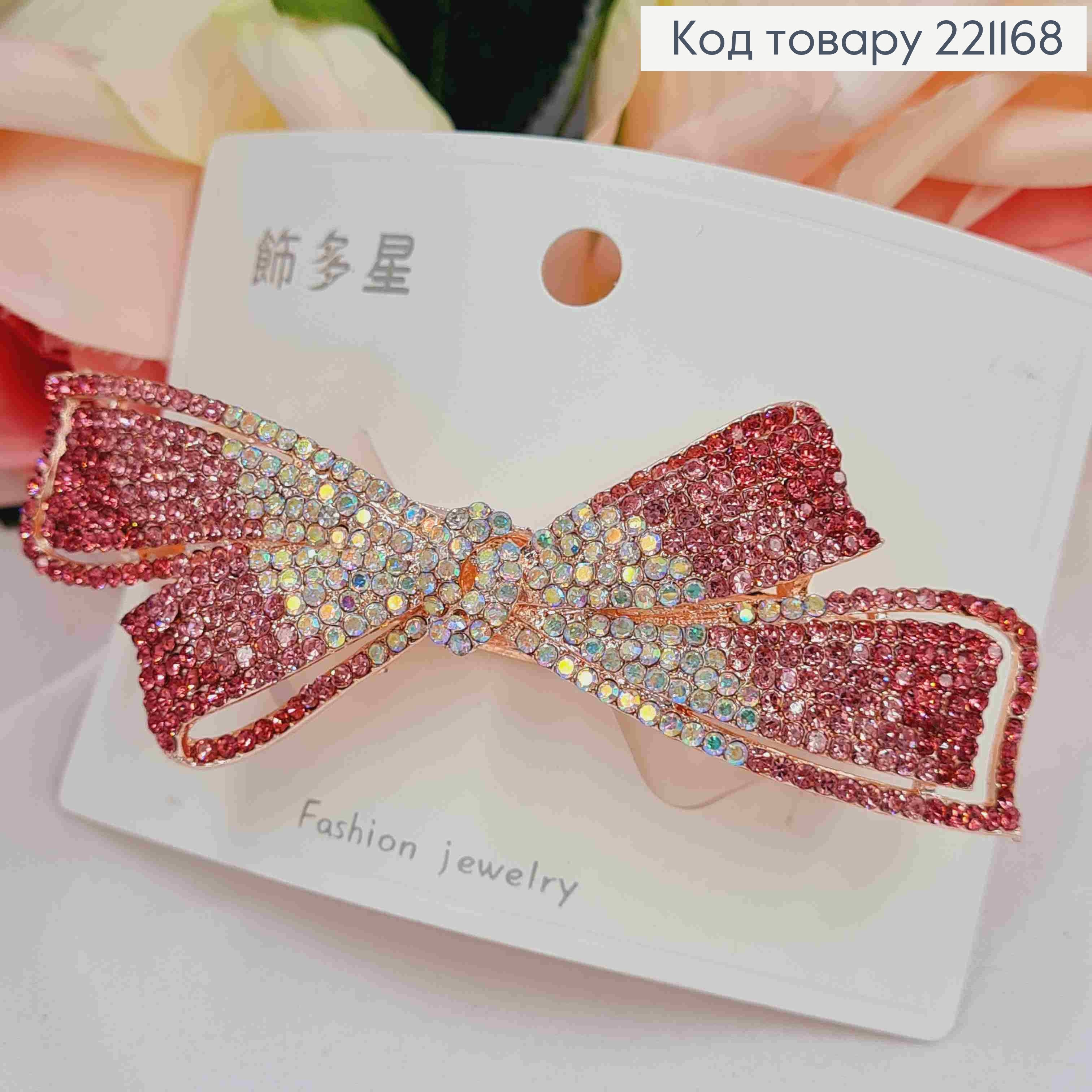 Заколка автомат, БАНТИК с камешками цвета Омбре Перломутровый/Розовый, 9см
