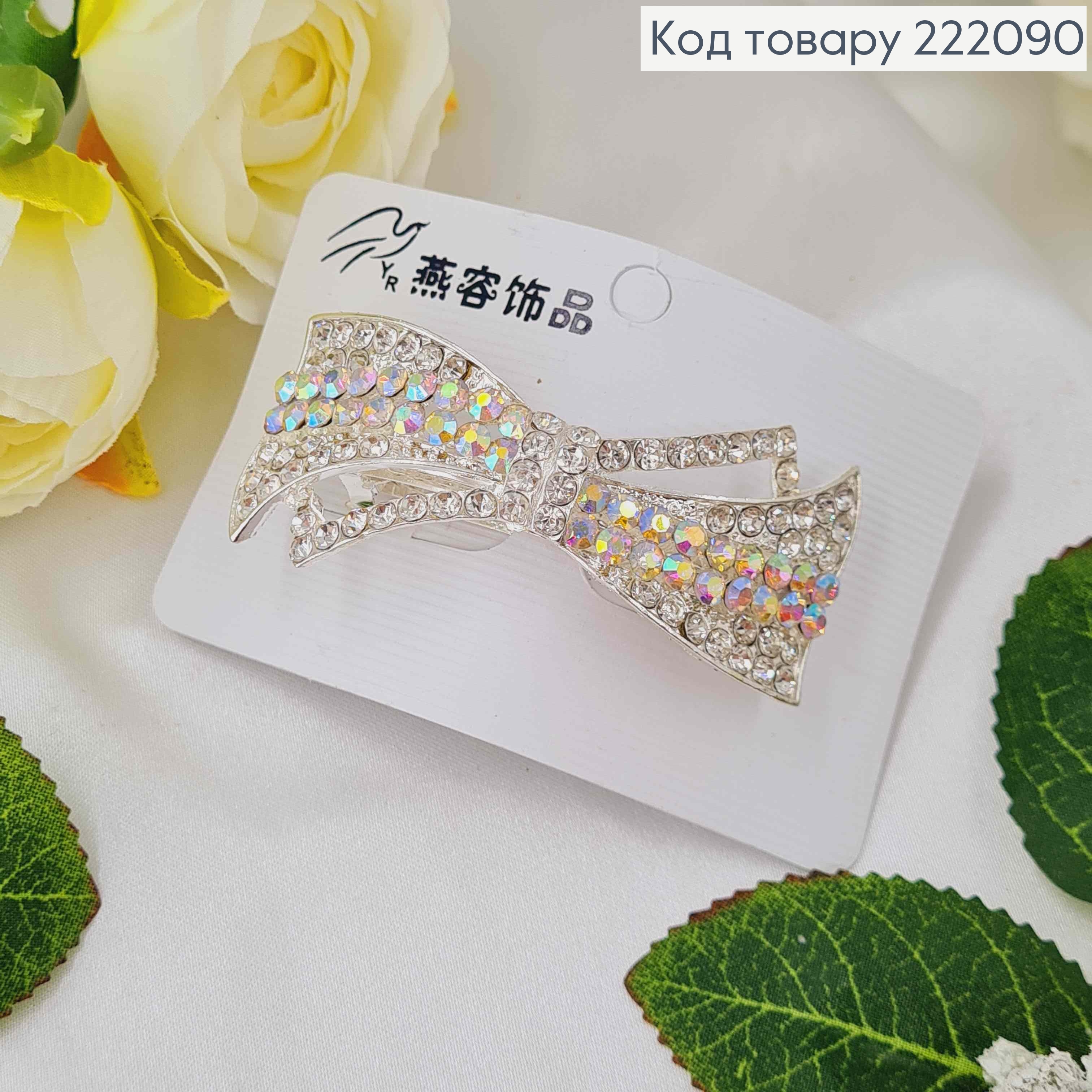 Заколка автоматик "Бантик" с блестящими камешками и цепочками, 6,5*6+9см, Серебряного цвета. 222169 фото
