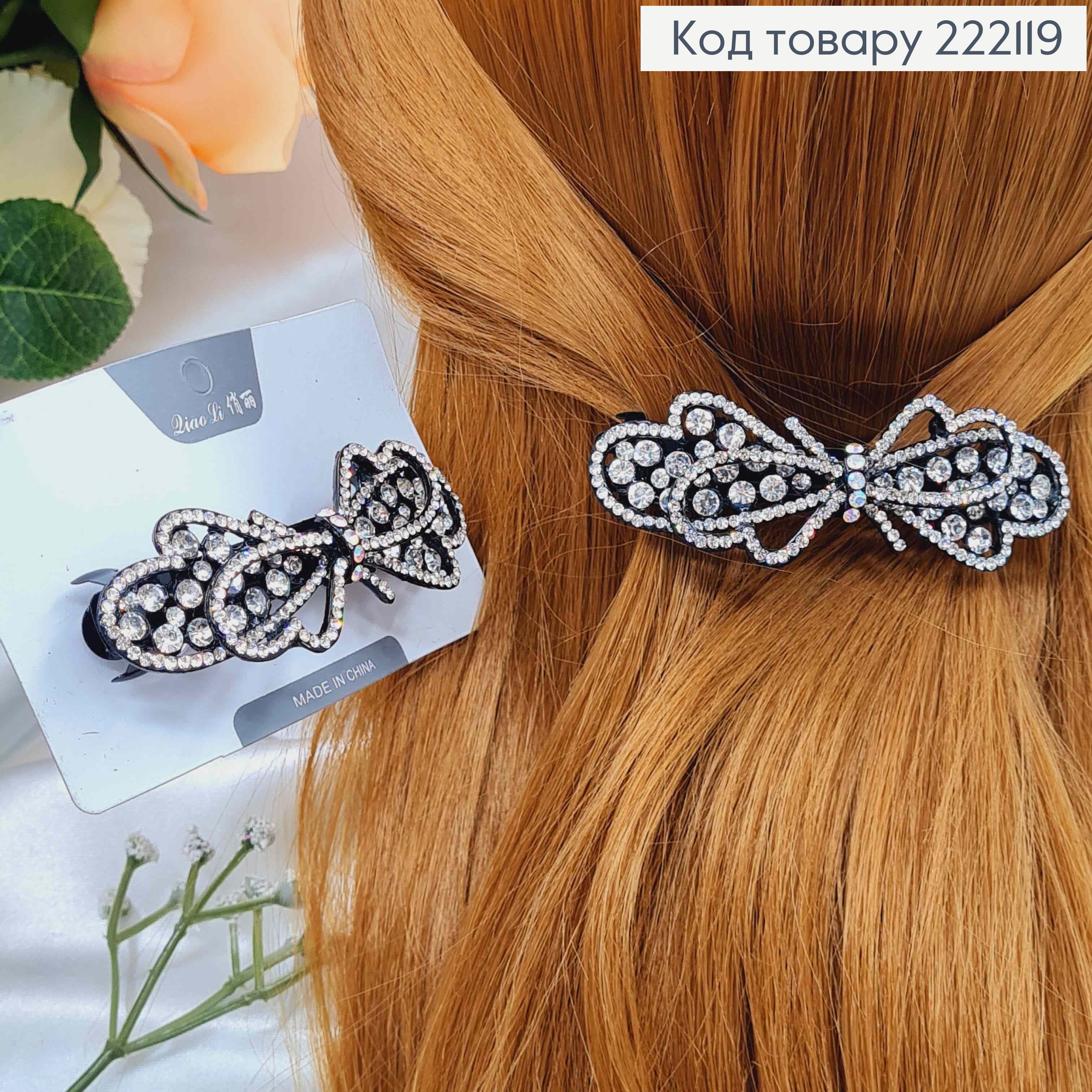 Заколка автоматик "НЕЖНЫЙ БАНТИК" с блестящими камнями, 8см, Черного цвета. 222163 фото