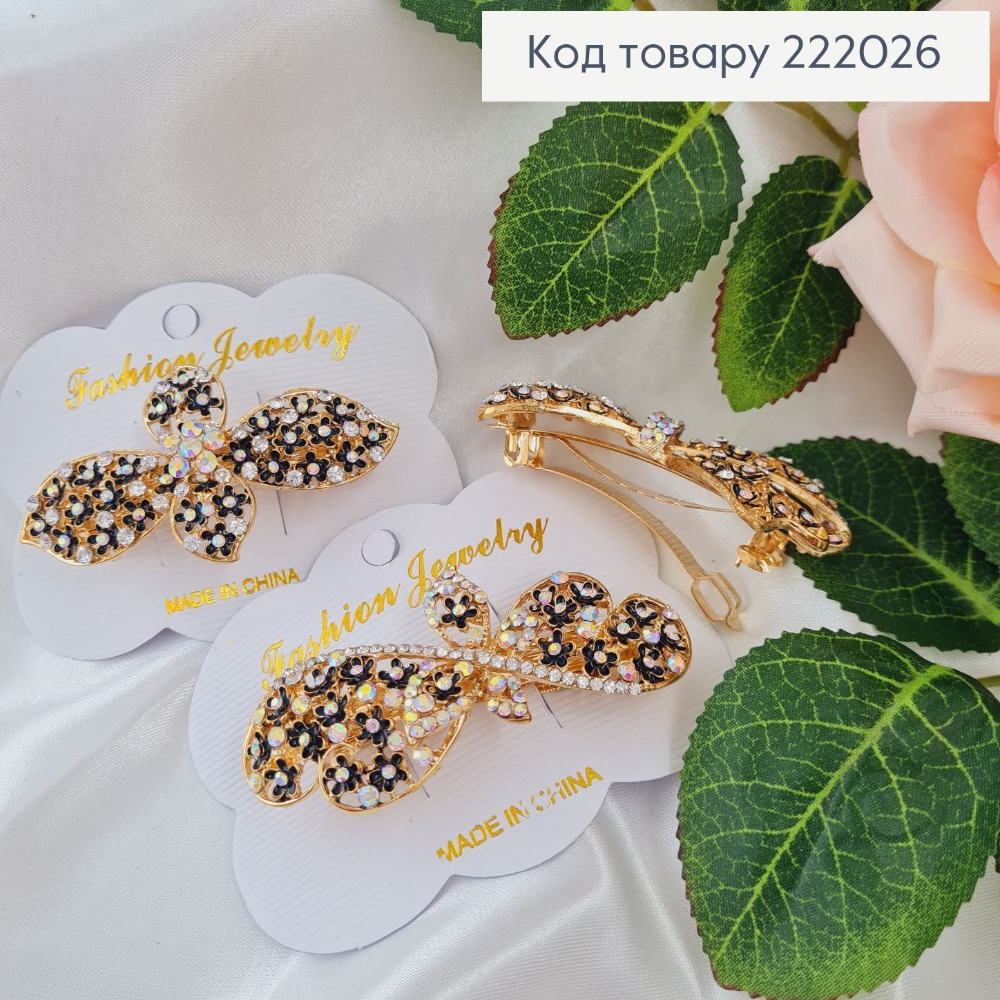 Заколка автоматик "Бантик" с блестящими камешками и цепочками, 6,5*6+9см, Золотого цвета. 222168 фото