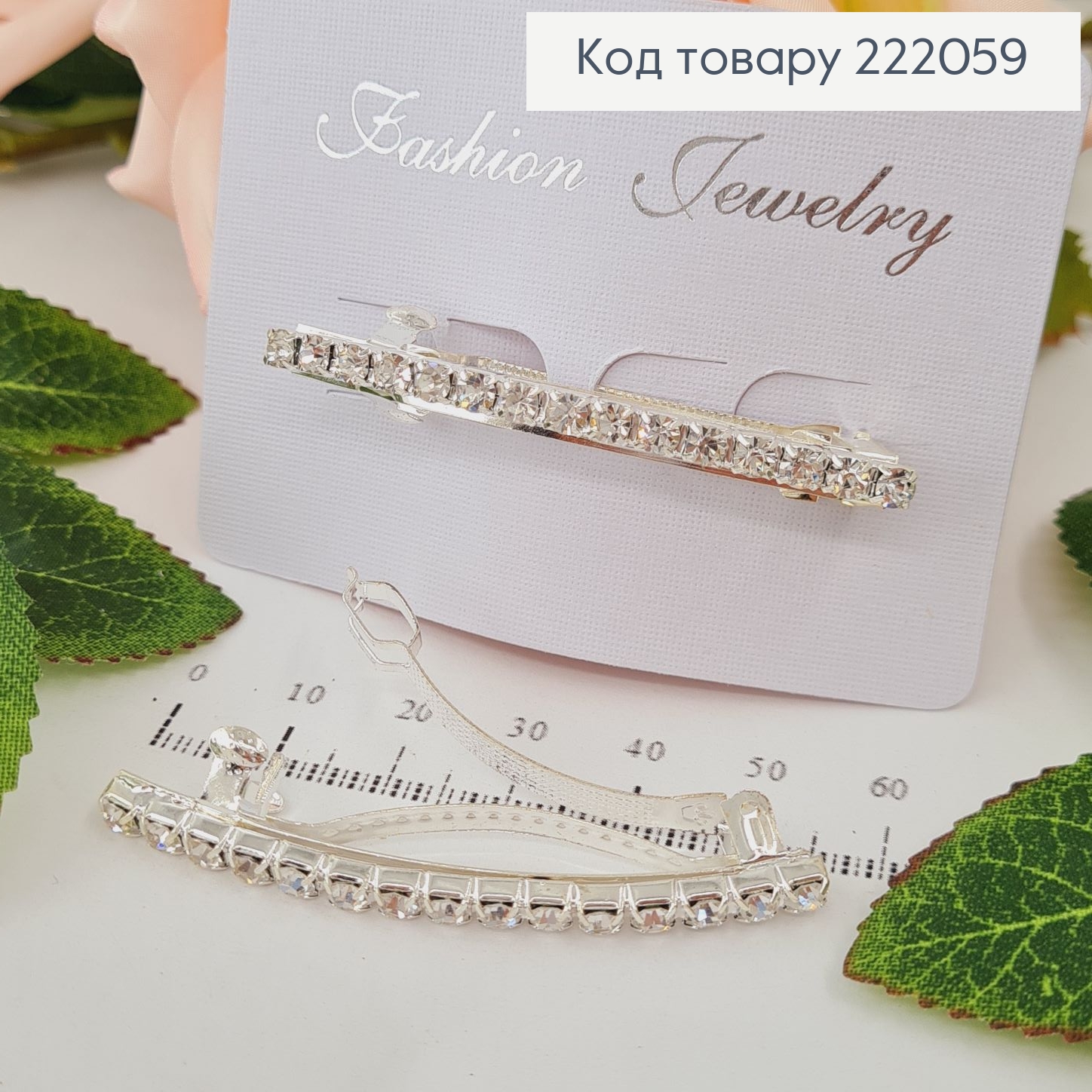 Заколка автомат металлическая "ВАН КЛОВ" с Блестящими камешками, 6,5*1,5см, Серебряного цвета 221209 фото