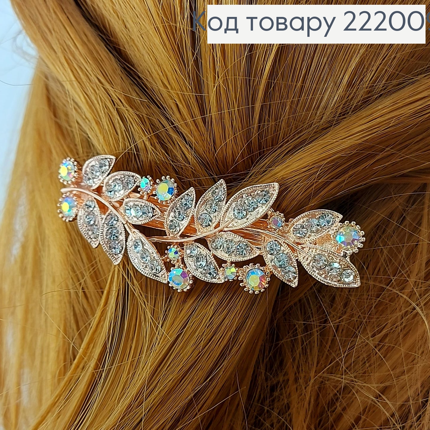 Заколка автомат металл золото с камнями Веточка 7 см в ассорт.