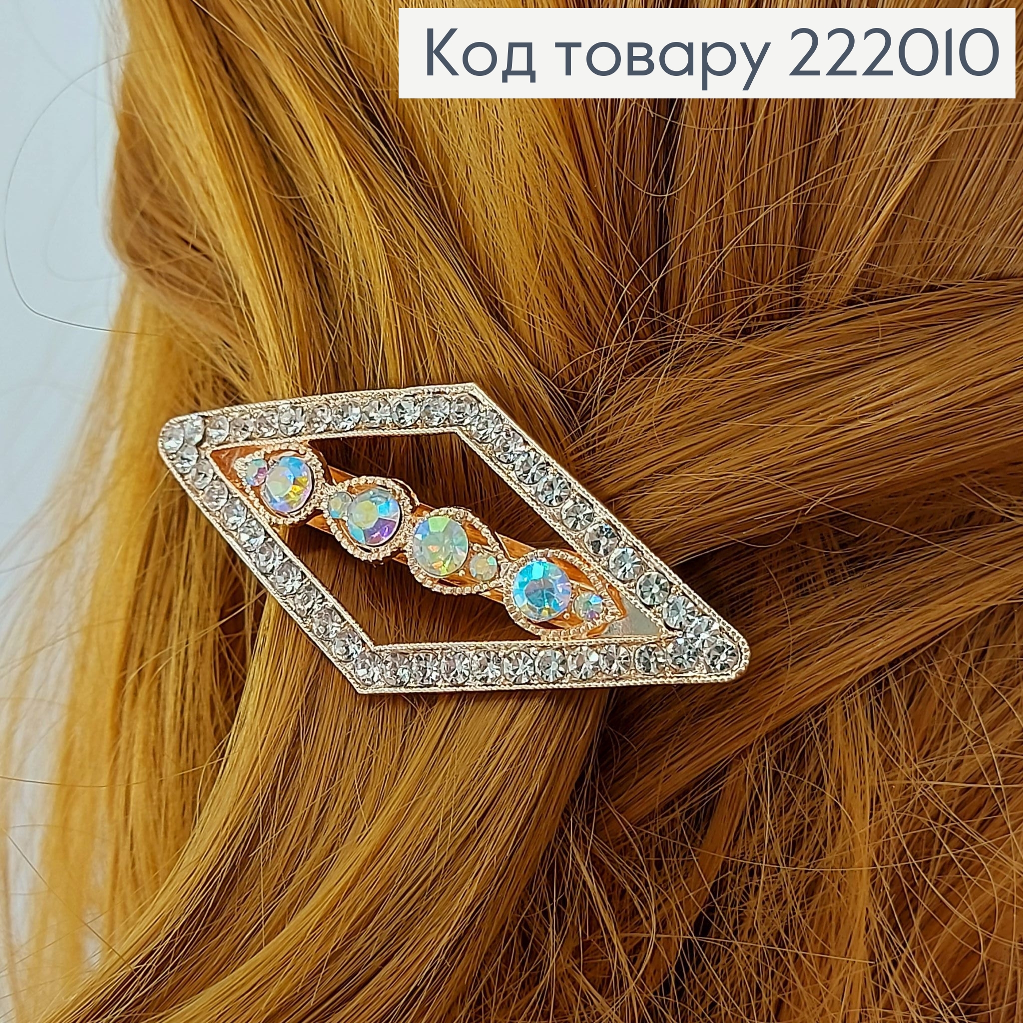 Заколка автомат металл золото с камнями Ромб 7 см в ассорт.
