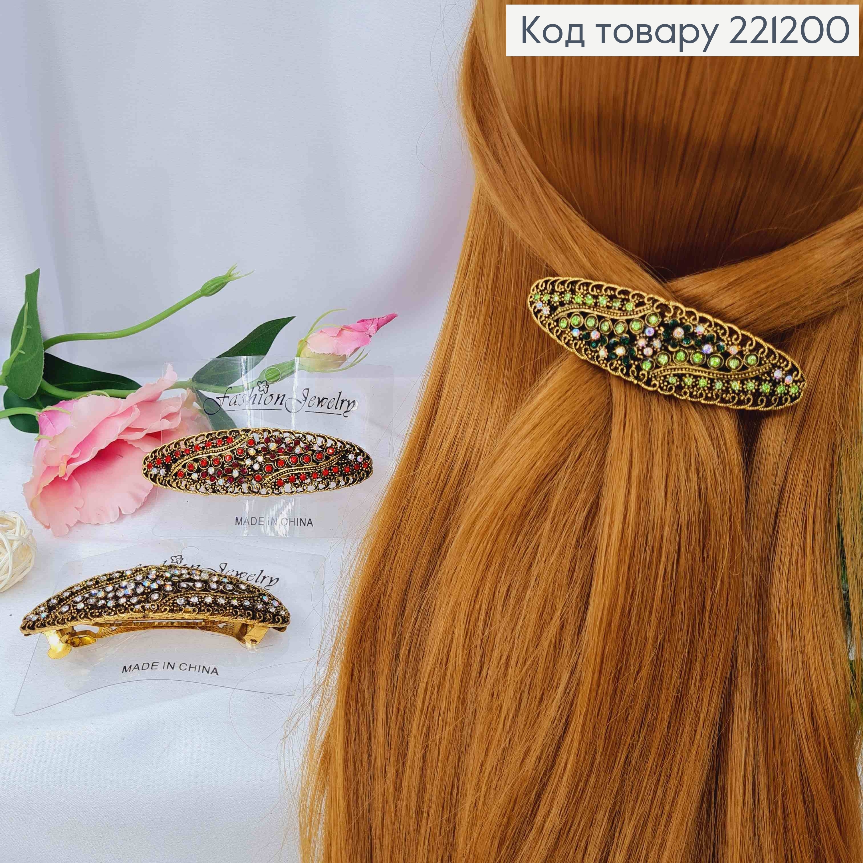 Заколка автомат металлическая Овальная АЖУРНАЯ украшена Блестящими камнями в ассорт, 9см, Золотая