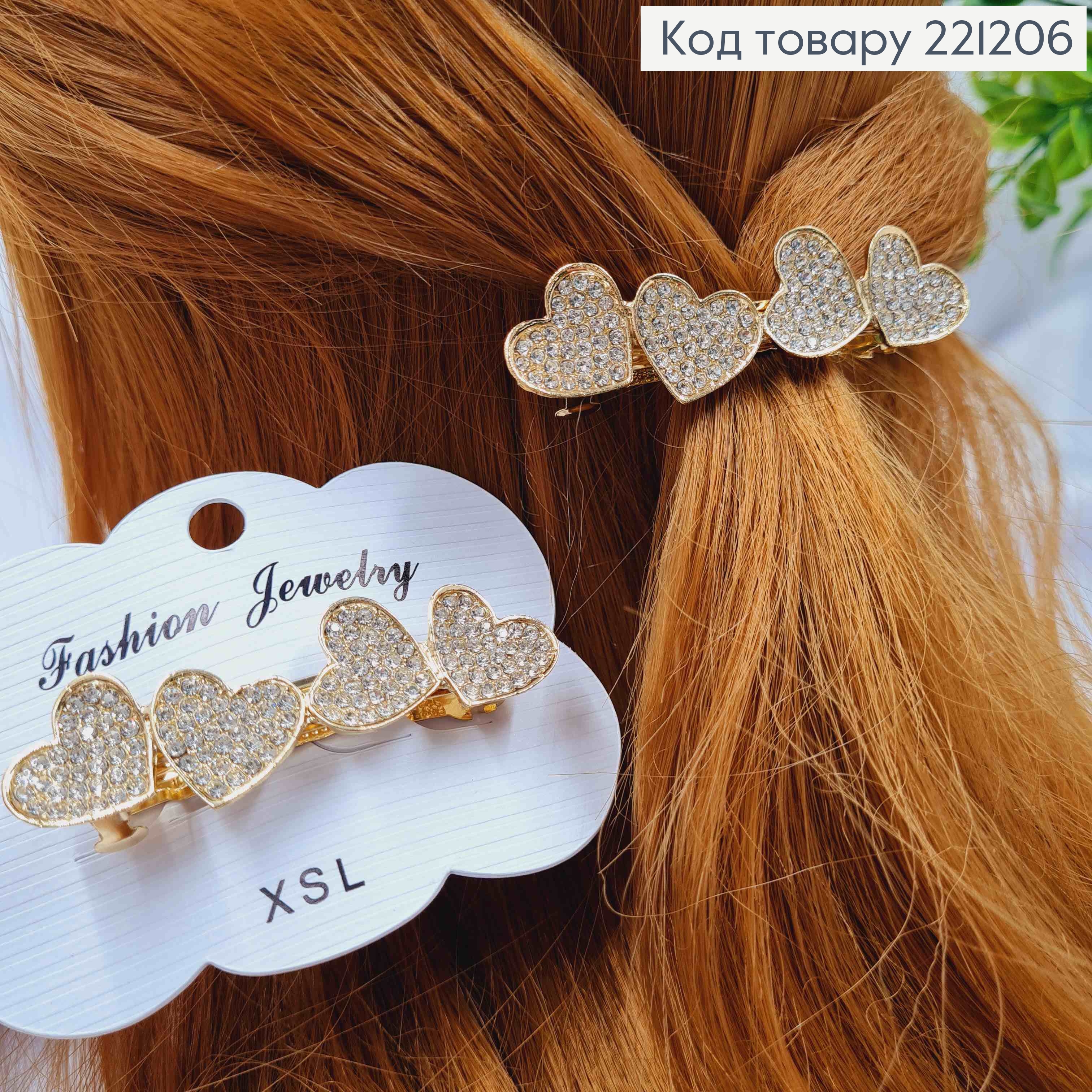 Заколка автомат металлическая "СЕРДЕЧКА" с Блестящими камешками, 6,5*1,5см, Золотого цвета