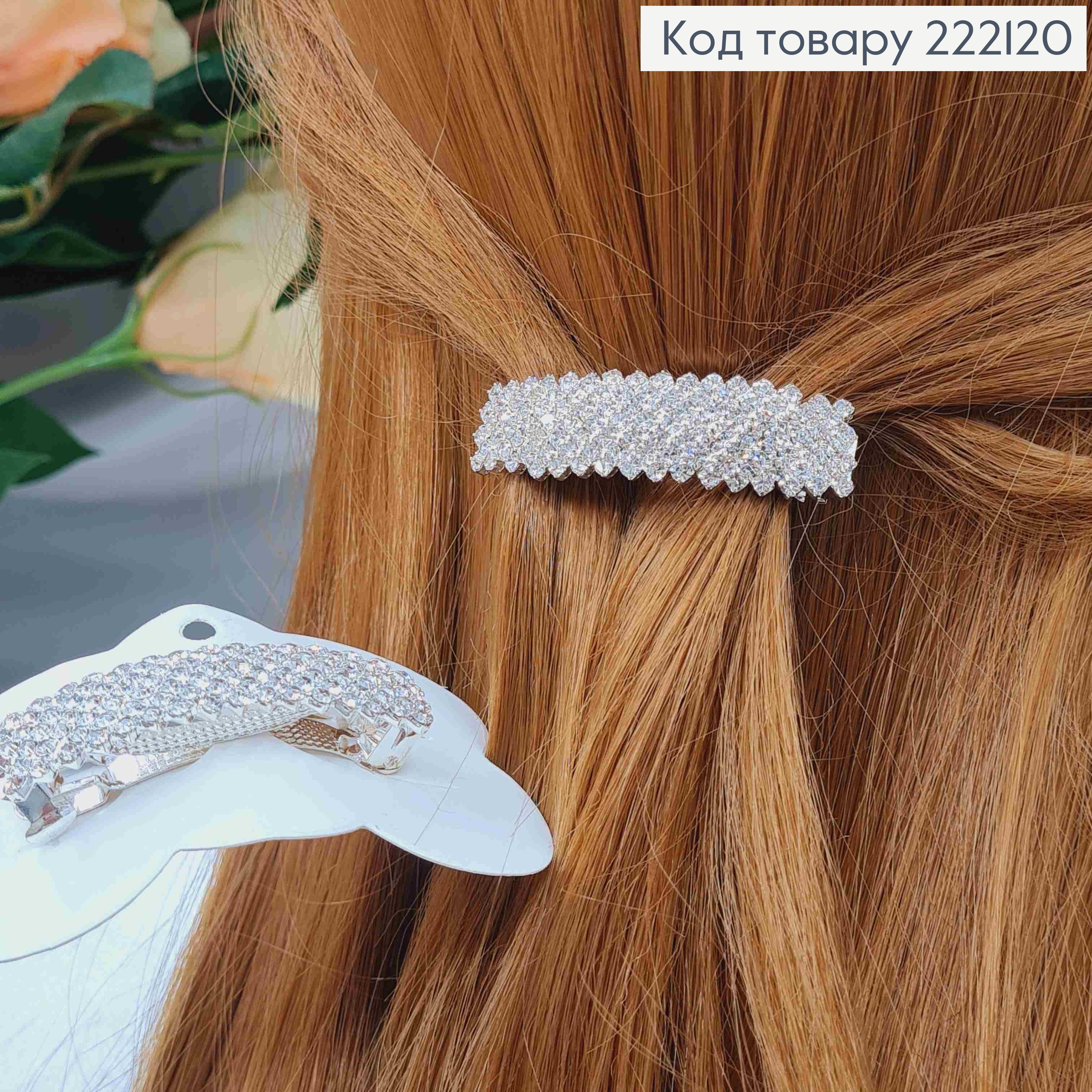 Заколка Автомат, ПРЯМОУГОЛЬНАЯ серебряного цвета в камешках, 5*1,5см.