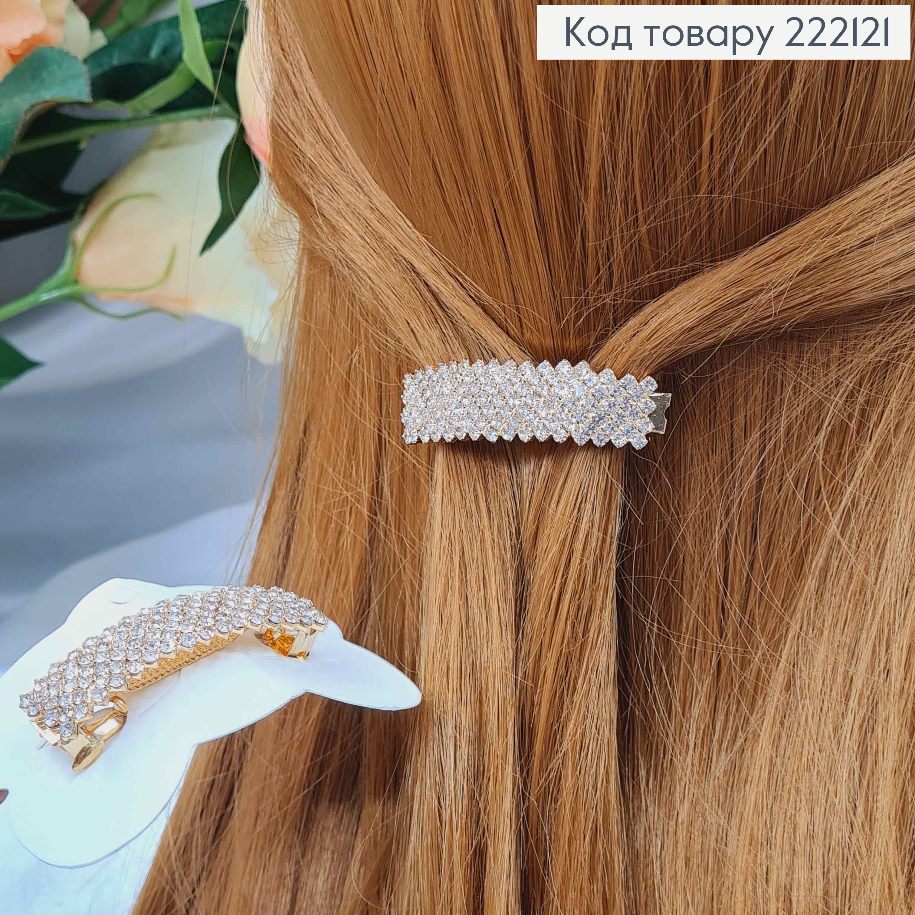 Заколка Автомат, ПРЯМОУГОЛЬНАЯ золотого цвета в камнях, 5*1,5см.