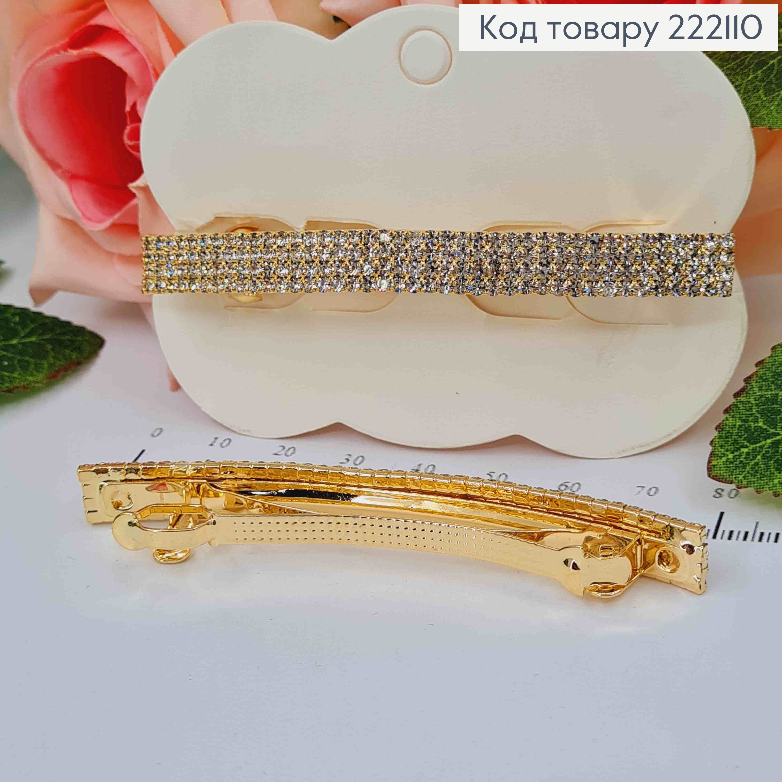Заколка Автомат, ПРЯМОУГОЛЬНАЯ золотого цвета в камнях, 8см