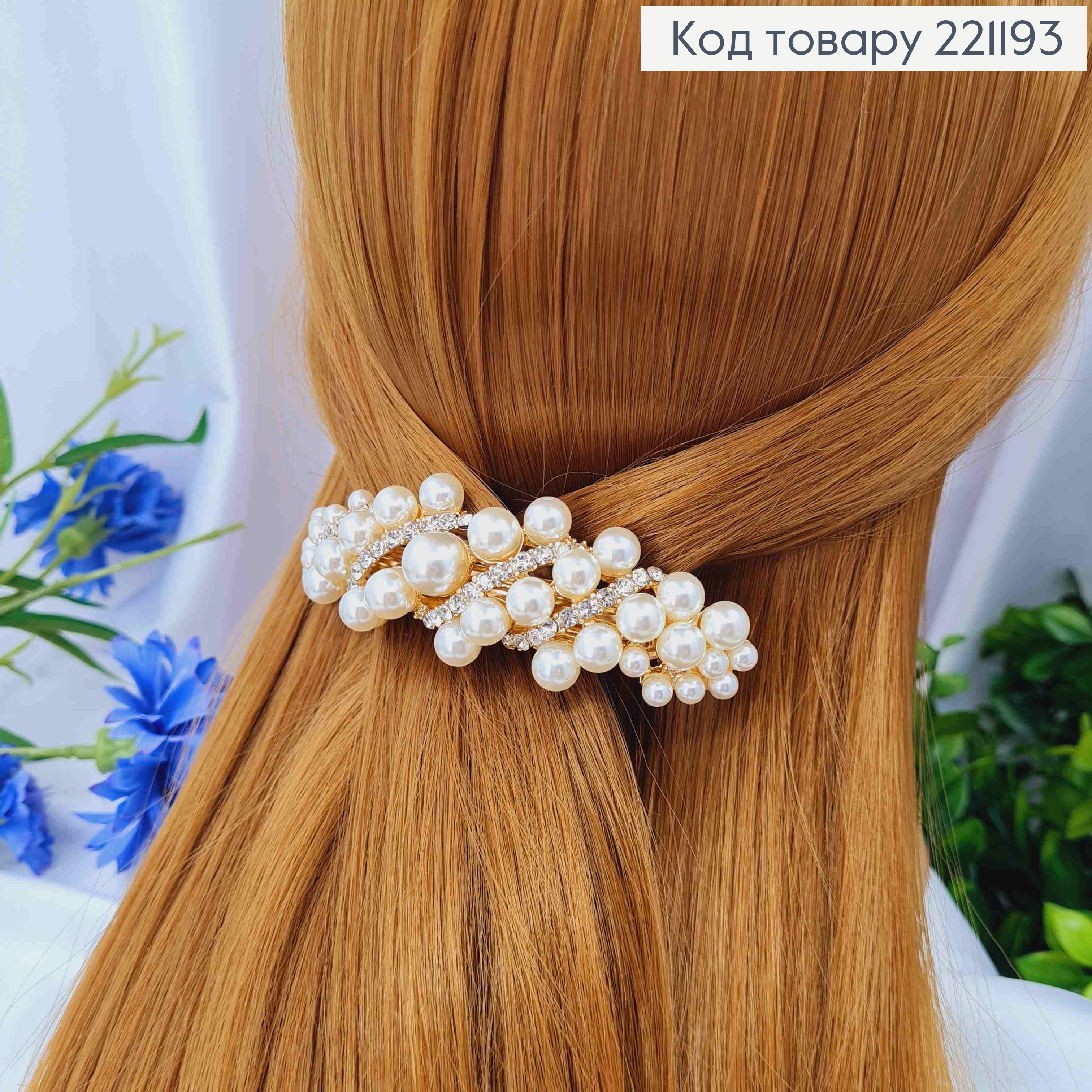 Заколка автоматик "Дуга" с жемчужинами, 6см, Золотого цвета. 222167 фото