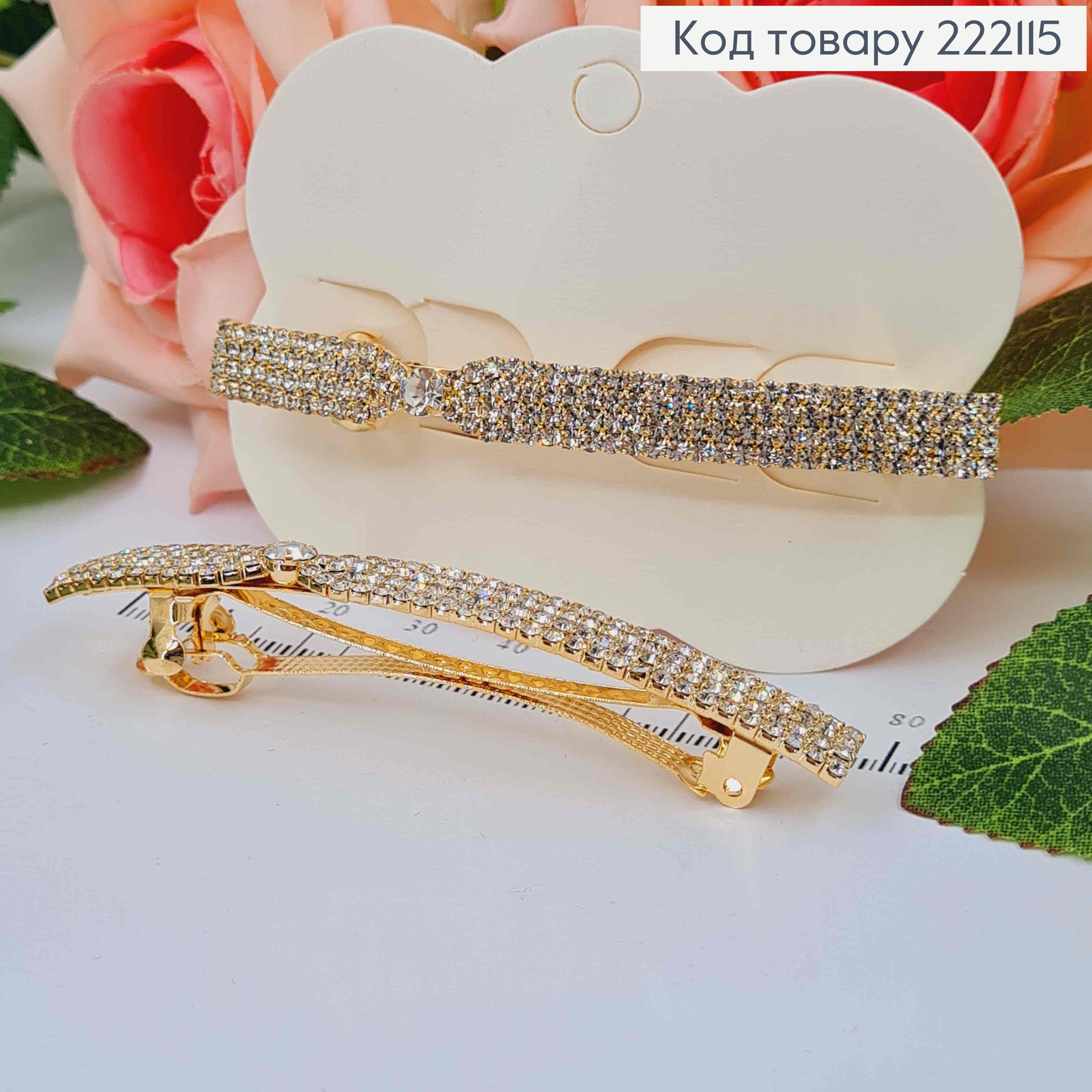 Заколка автоматик "ИЗЫСКАНЫЙ БАНТ" с Блестящими камнями, 6,5см, Золотого цвета 222159 фото