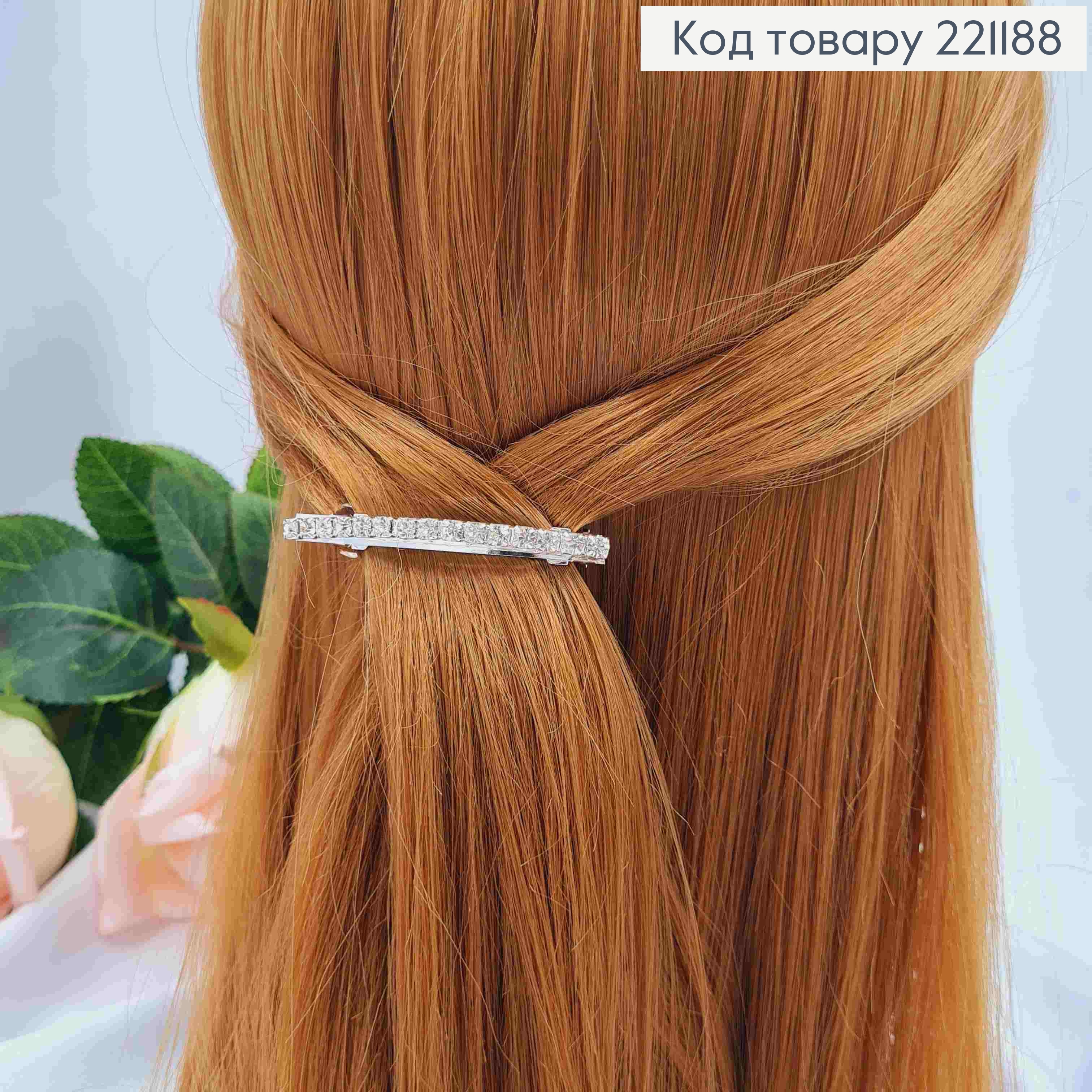 Заколка автомат металлическая "ЗВЕЗДКИ" с Блестящими камешками, 7*2см, Серебряного цвета 221210 фото