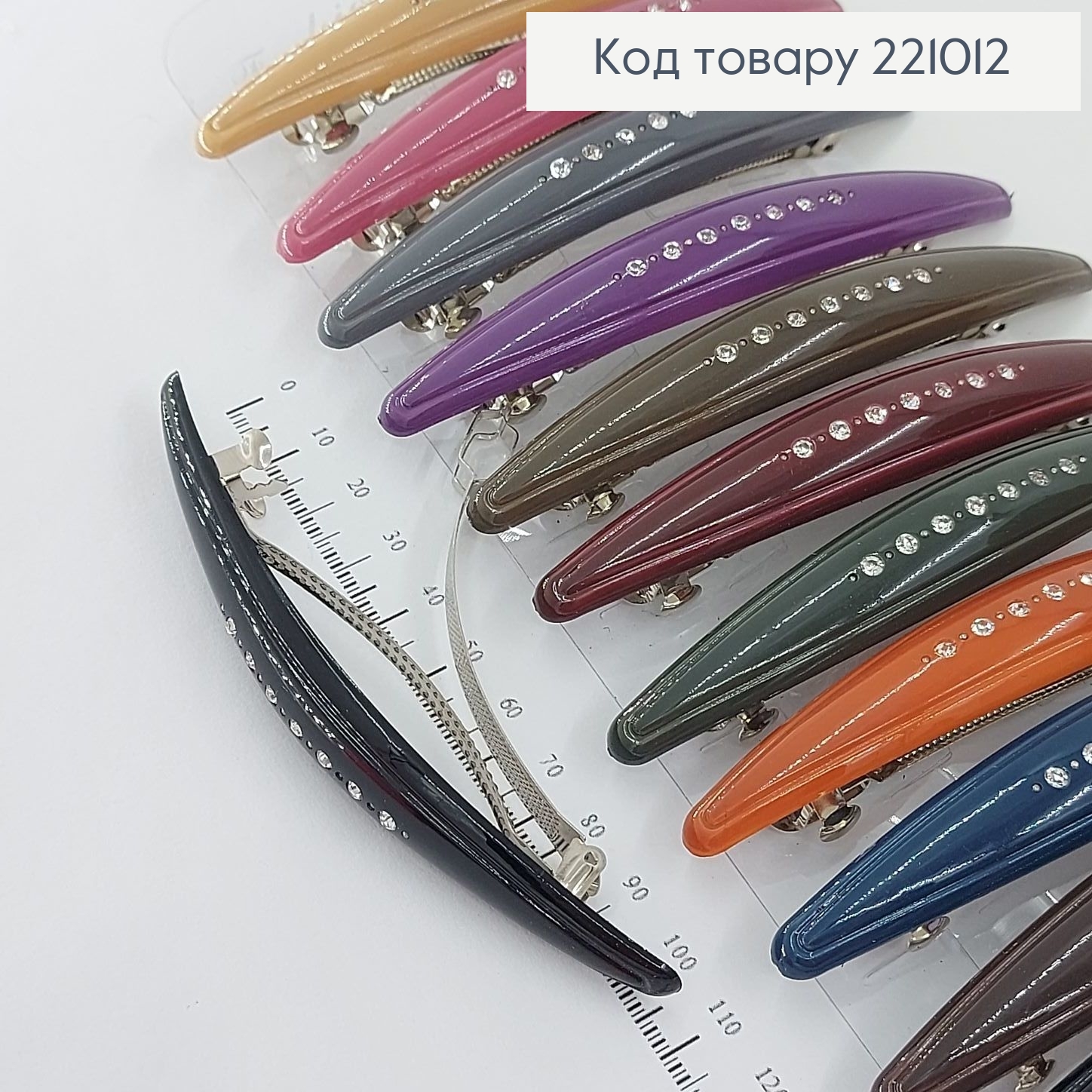 Заколка автомат с камнями 11 см в ассор.