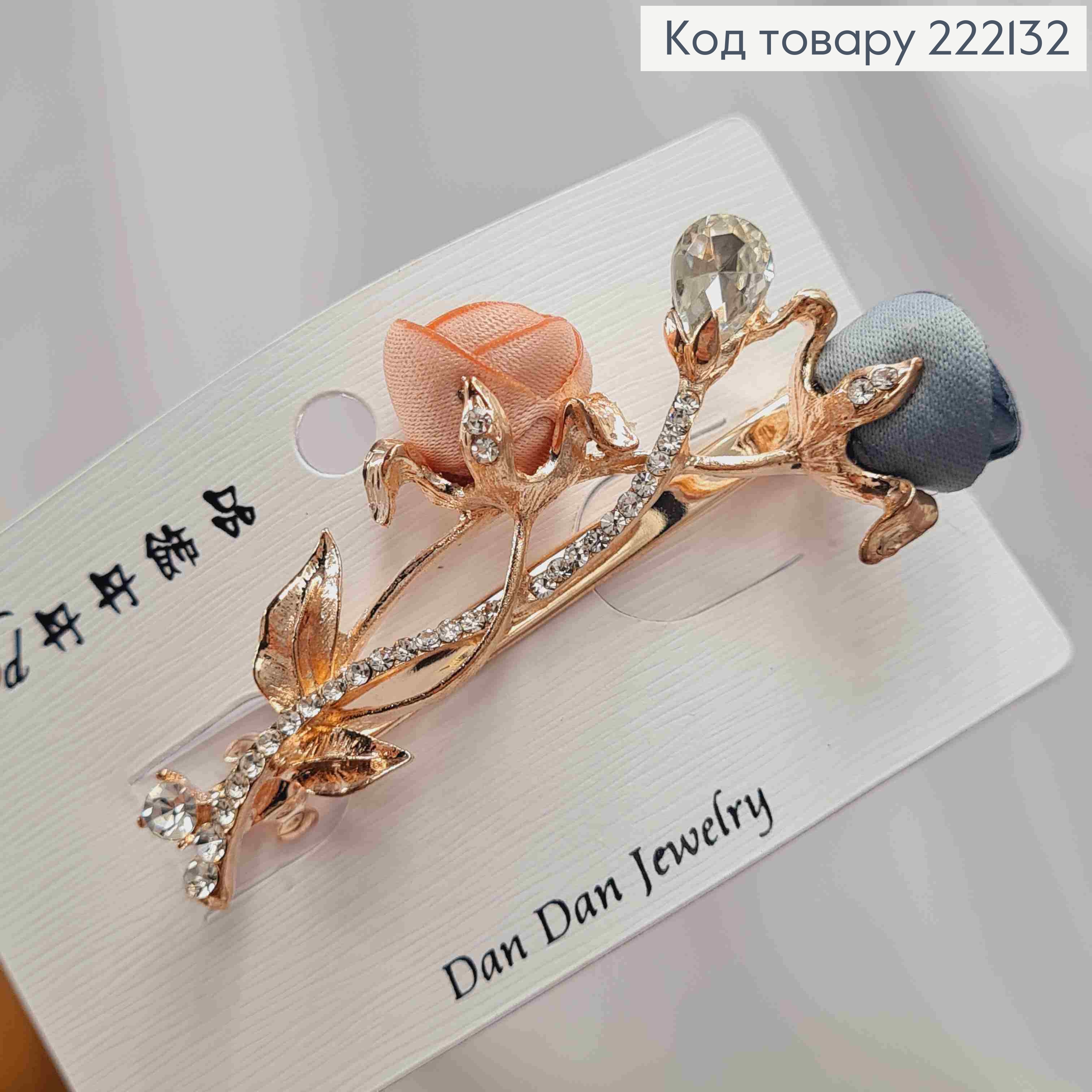 Заколка автомат Золотого цвета 5,5см, Две Розы пастельных цветов с камешками.