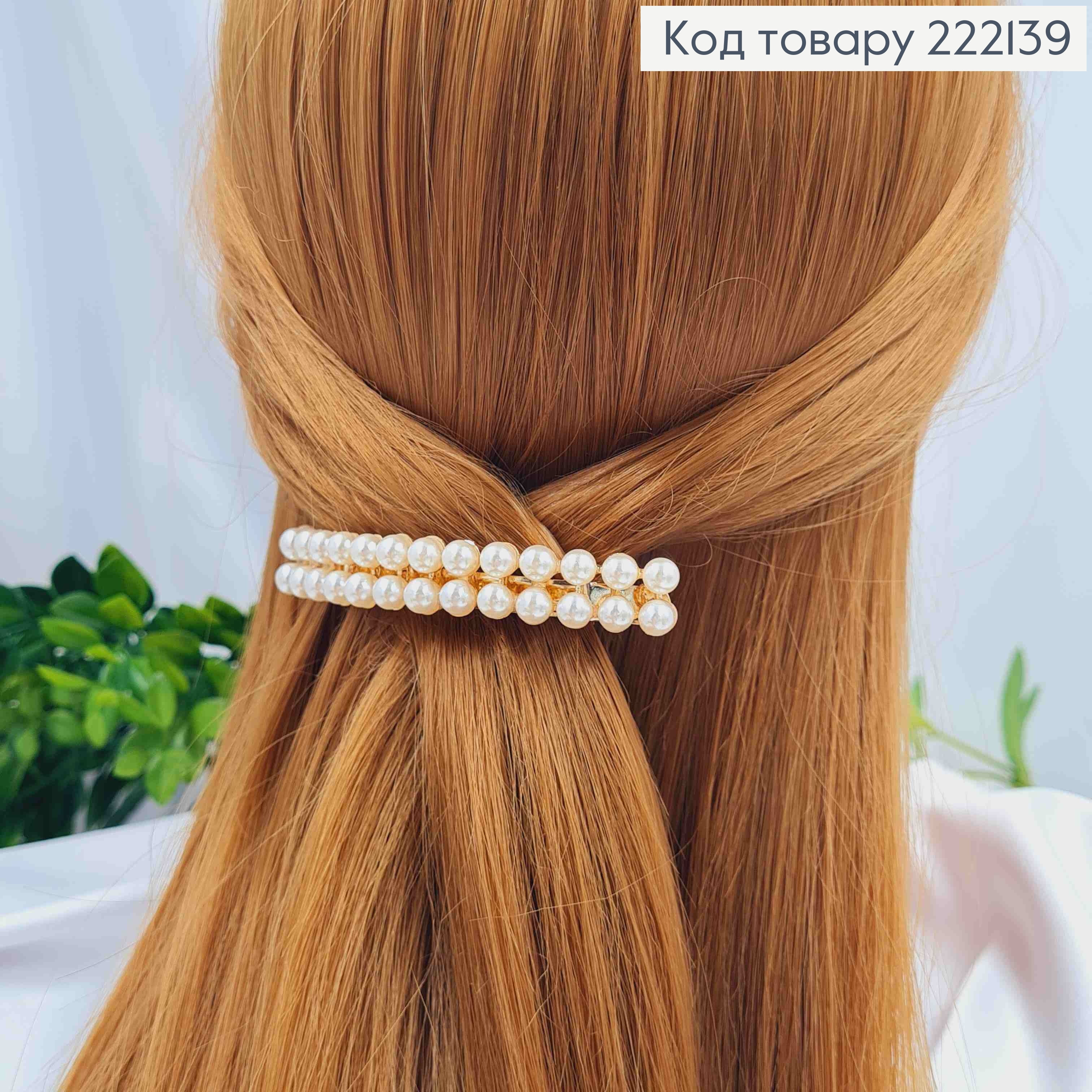 Заколка автоматик "Дуга" с жемчужинами, 6см, Золотого цвета. 222167 фото