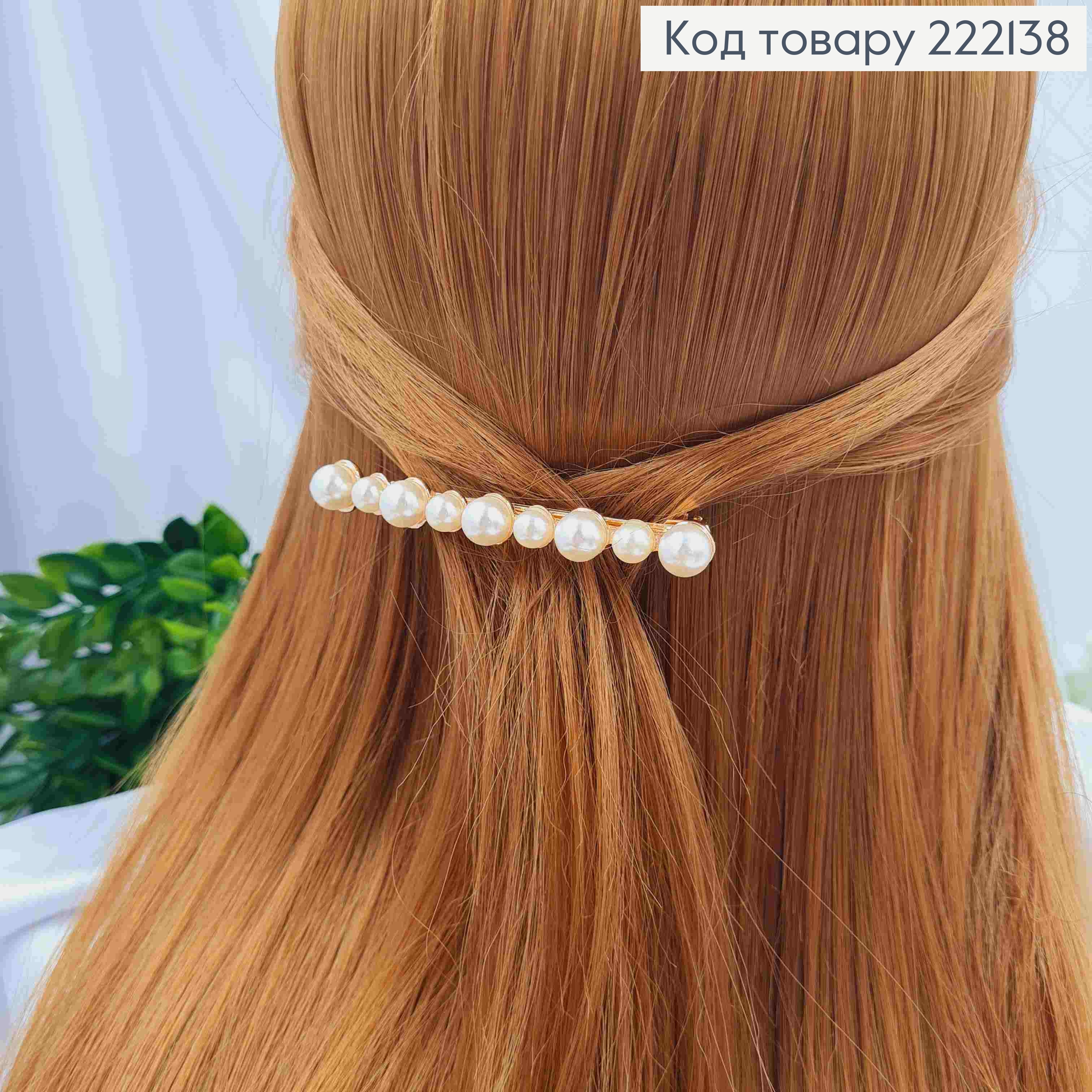 Заколка автоматик "Дуга" с жемчужинами, 6см, Золотого цвета. 222167 фото