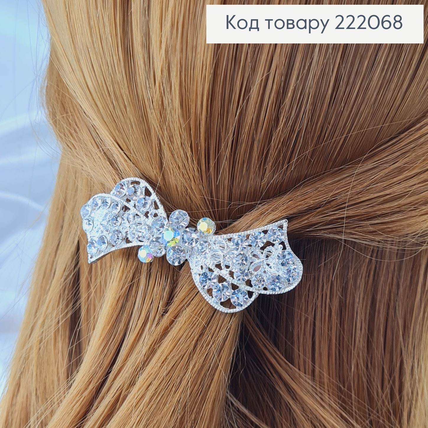Заколка автоматик "Бантик" с блестящими камешками и цепочками, 6,5*6+9см, Серебряного цвета. 222169 фото
