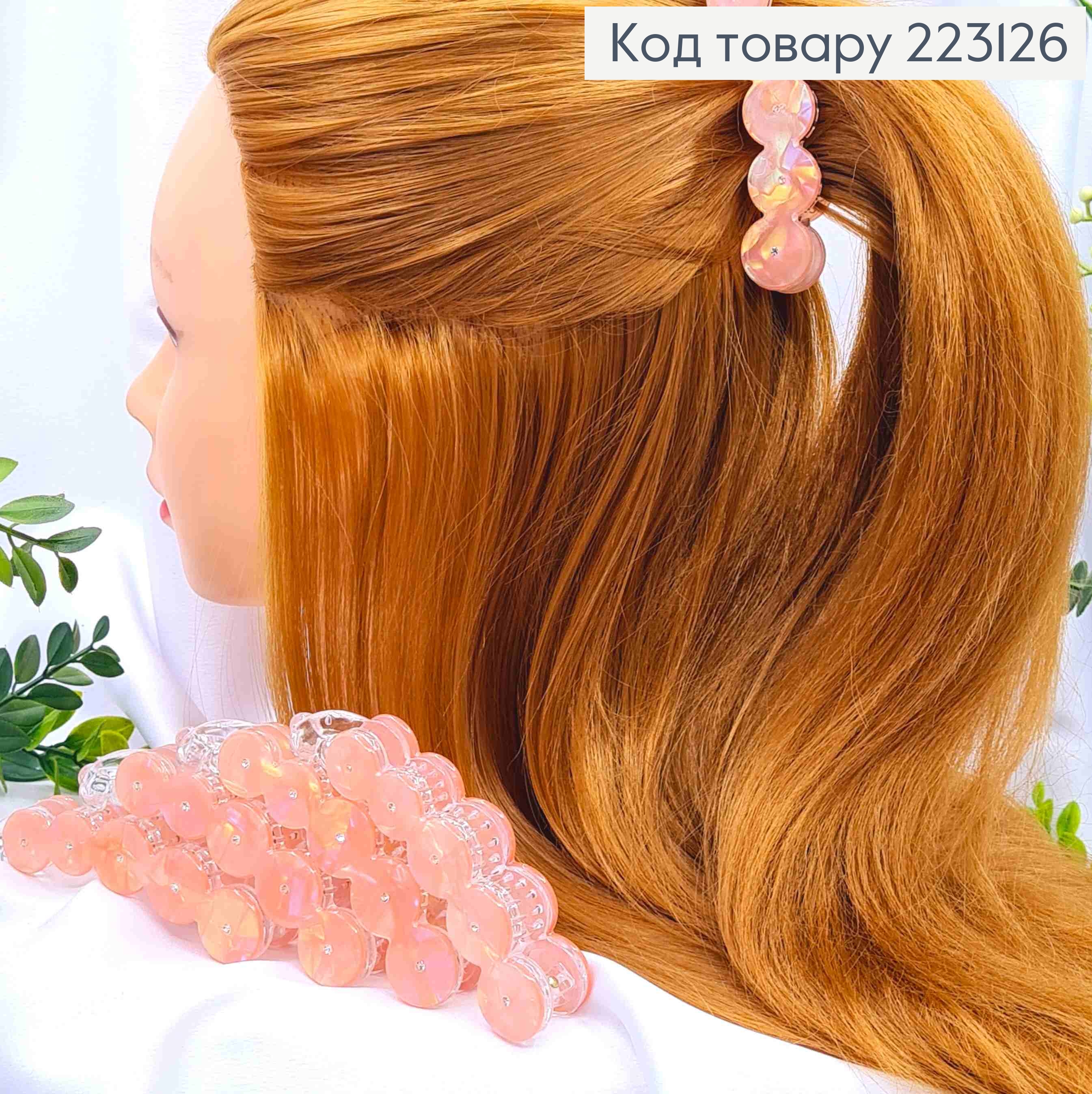 Заколка банан (акрил), украшенная стразами, 10см, перламутрово-розового цвета. 223123 фото