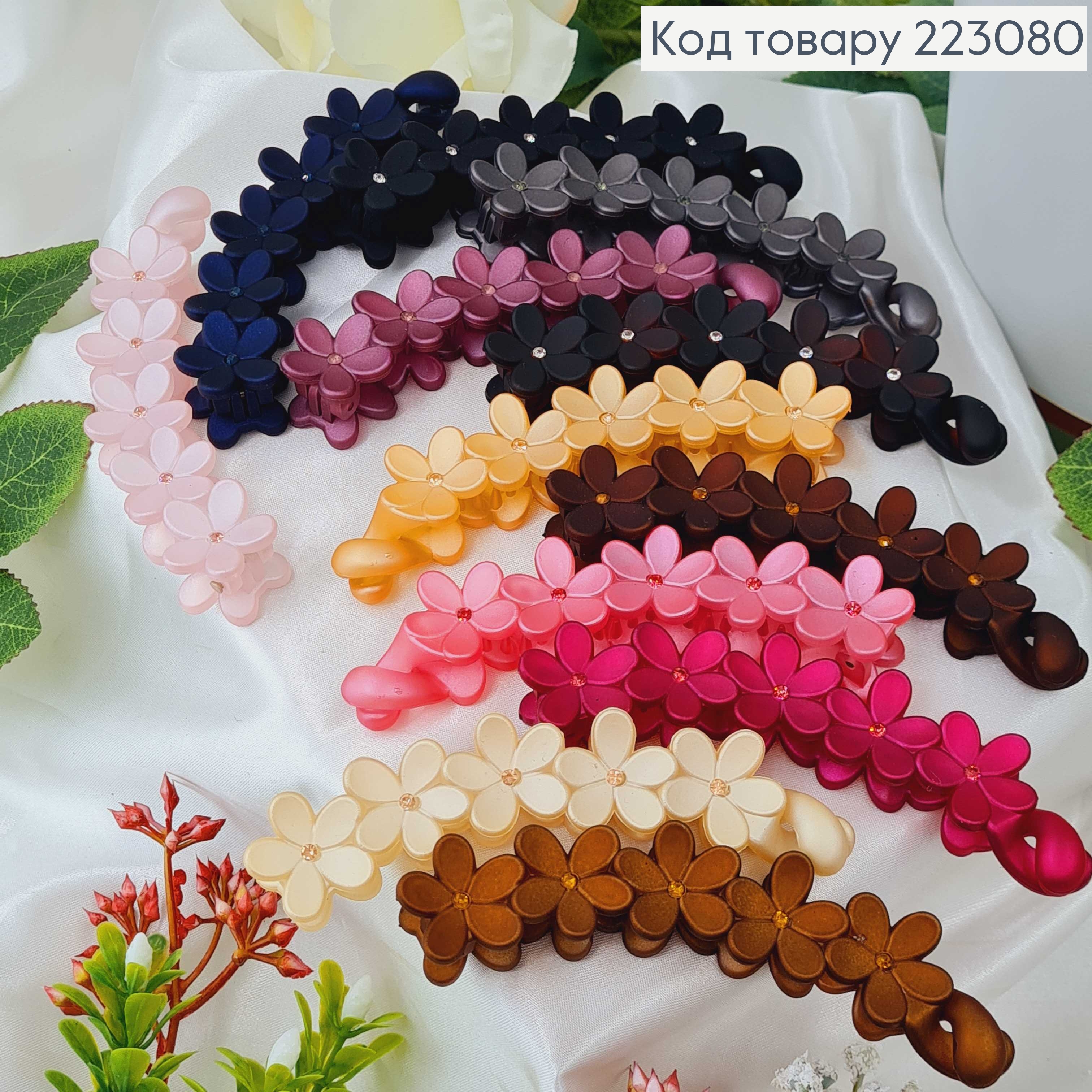 Заколка банан, каучук Цветочек с камешком, 10см, цвета в ассорт.