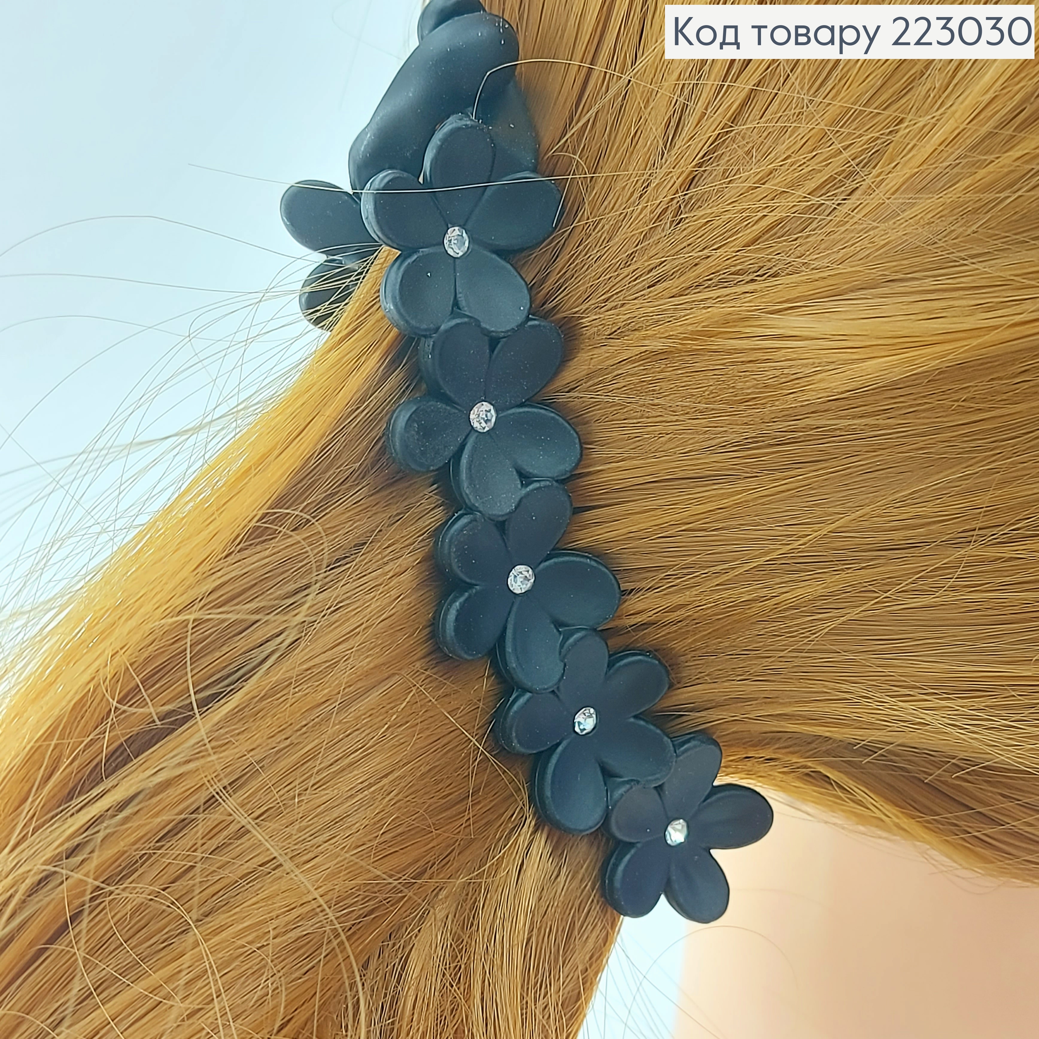 Заколка банан Цветочек каучук с камнями 9,5 см