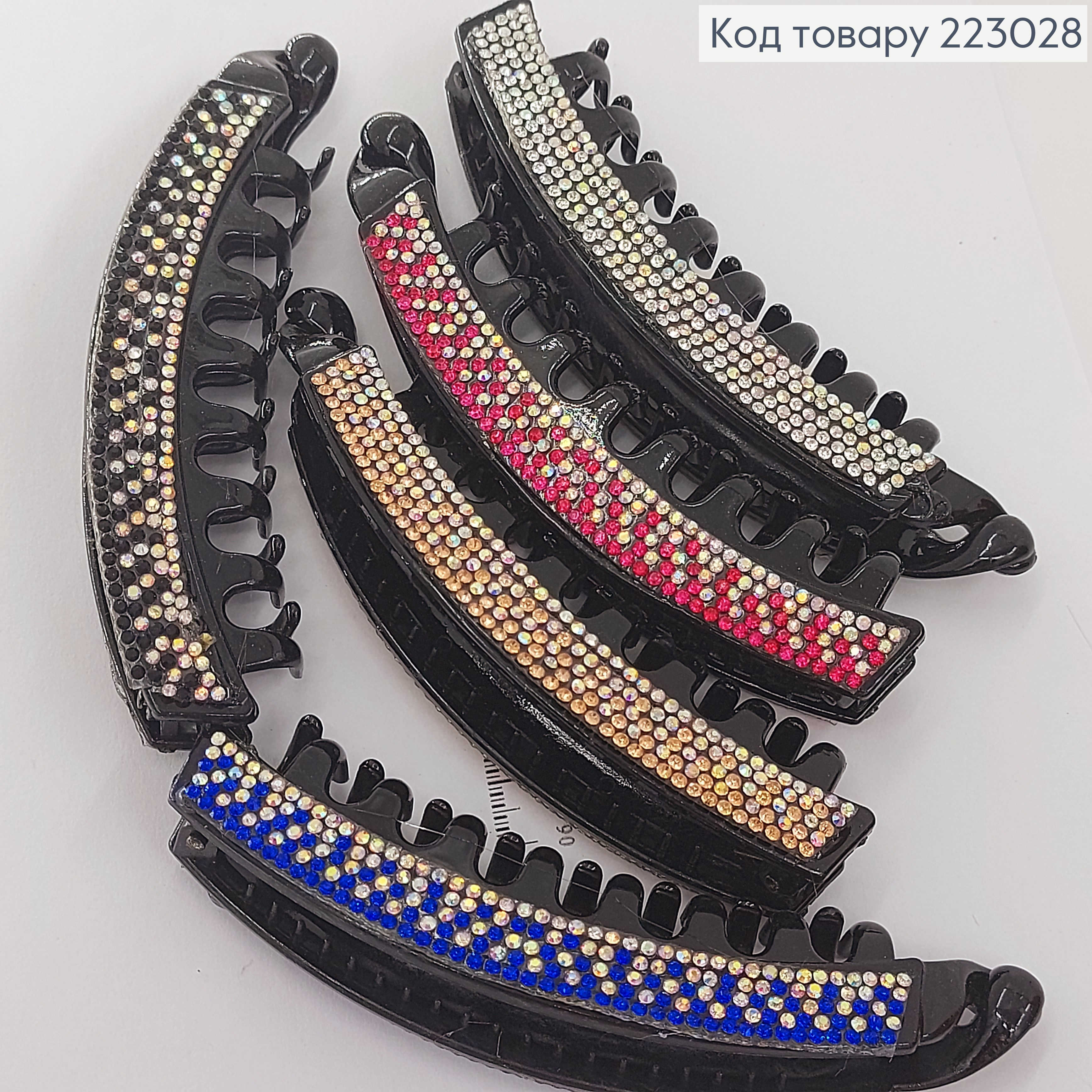 Заколка банан (акрил), украшенная стразами, 10см, перламутрово-фиолетового цвета. 223124 фото