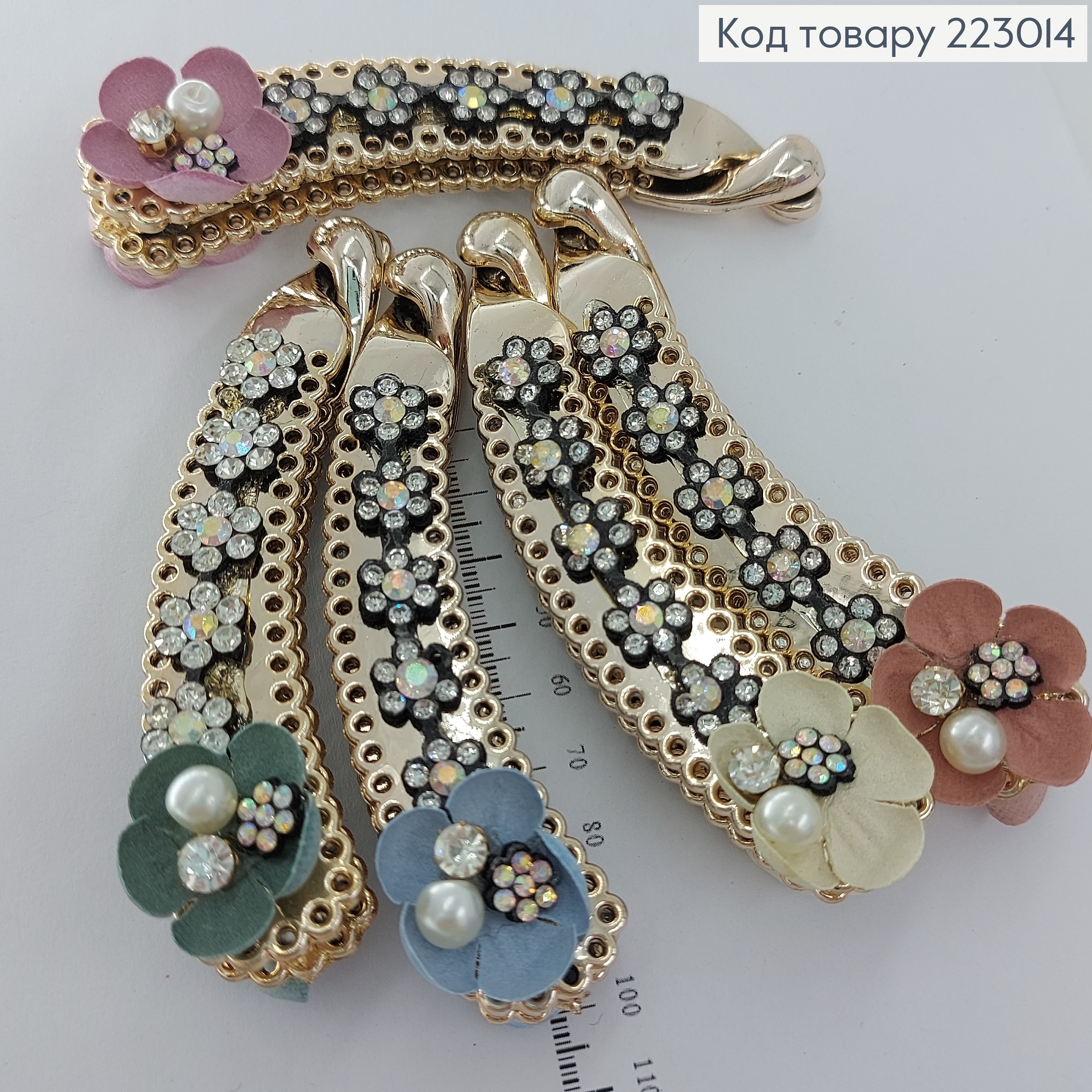 Заколка банан (акрил), украшенная стразами, 10см, перламутрово-голубого цвета. 223125 фото