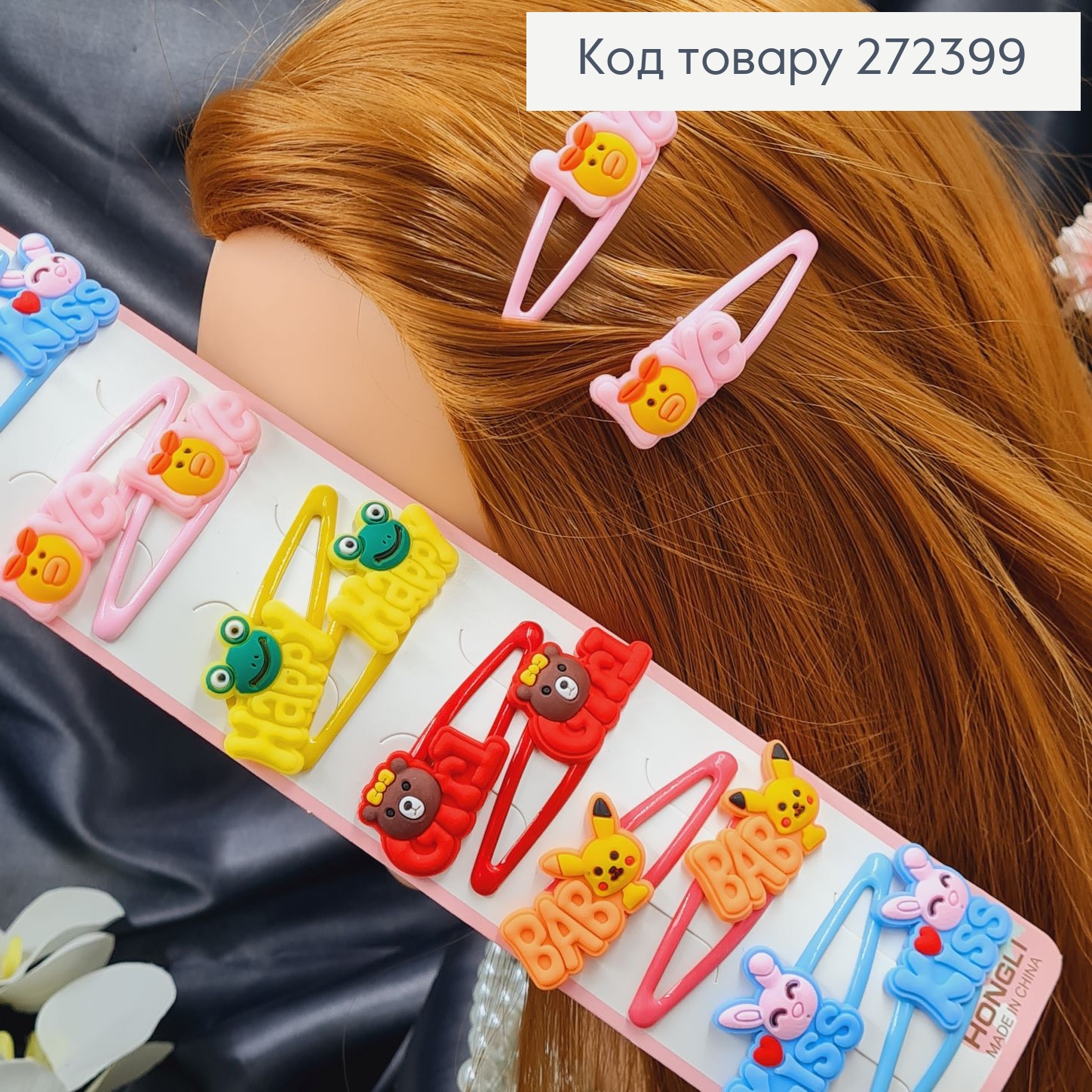 Набор заколка стрела (8шт), "Веселые Зверюшки", Пастельные цвета, заколка 2см, зверьки 1,5*1,5см 271522 фото