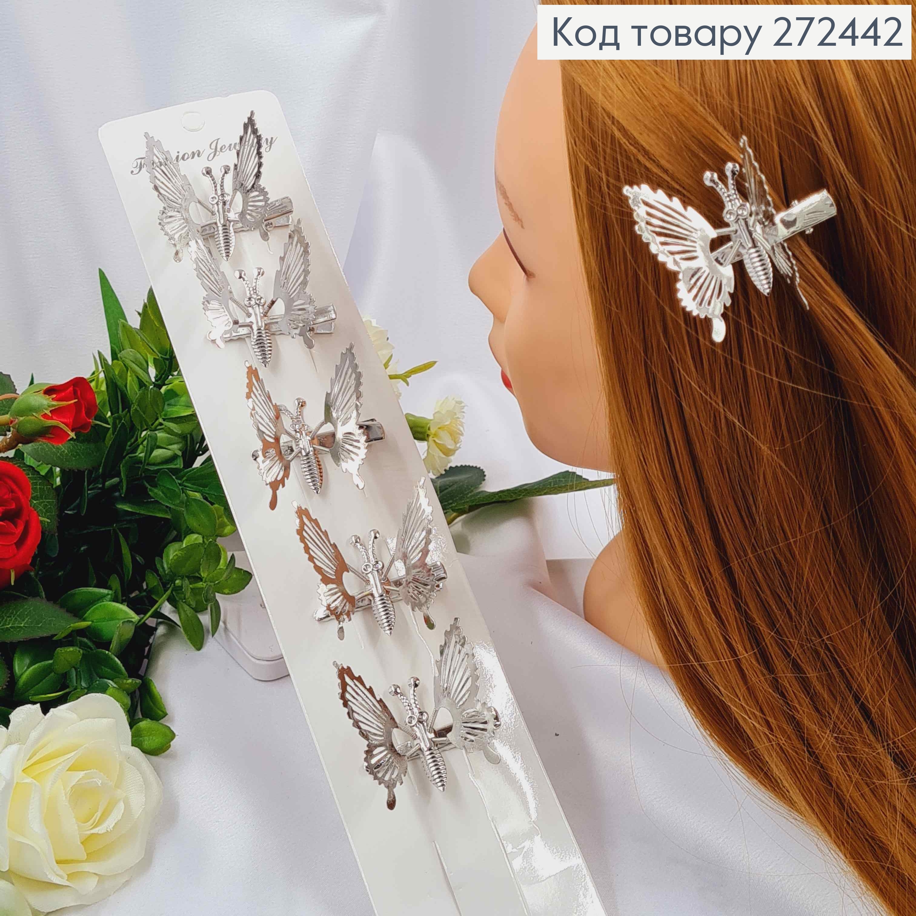 Заколка детская Бабочка с движущимися крылышками,серебряного цвета