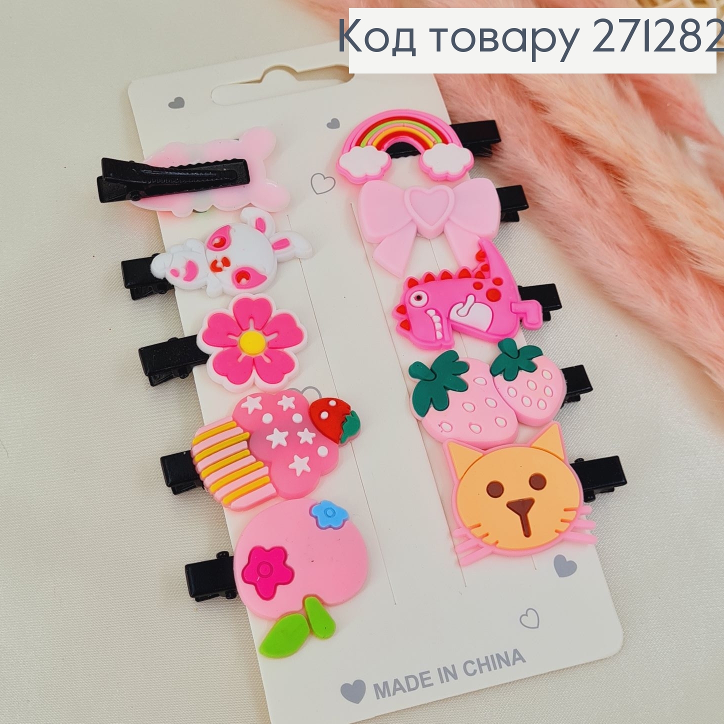 Набор заколка стрела (8шт), "Веселые Зверюшки", Пастельные цвета, заколка 2см, зверьки 1,5*1,5см 271522 фото