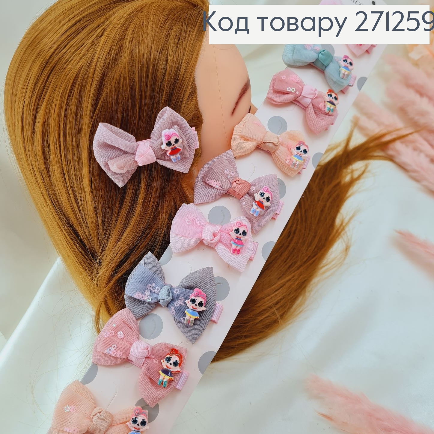Набор заколка тик-так (20шт), "Бантик" с Камешками, Пастельные цвета, заколка 4,7см, бантик 2,5см. 271518 фото