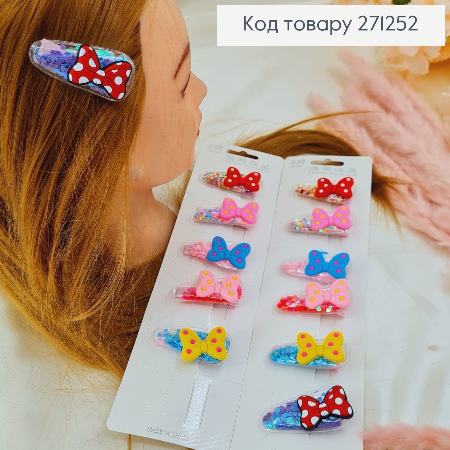 Набор заколка тик-так (20шт), "Бантик" с Камешками, Пастельные цвета, заколка 4,7см, бантик 2,5см. 271518 фото