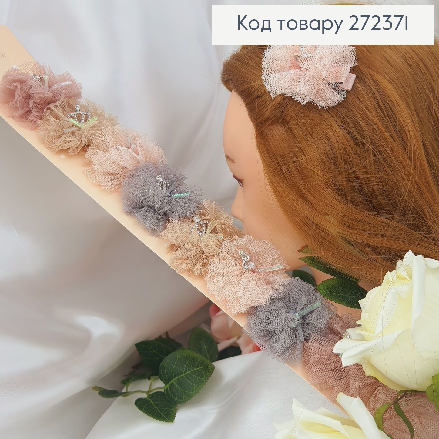 Набор заколка стрела(8шт), Цветок и Бант, Молочно-Пастельного цвета, заколка3,5см, бант4см;6см 271525 фото