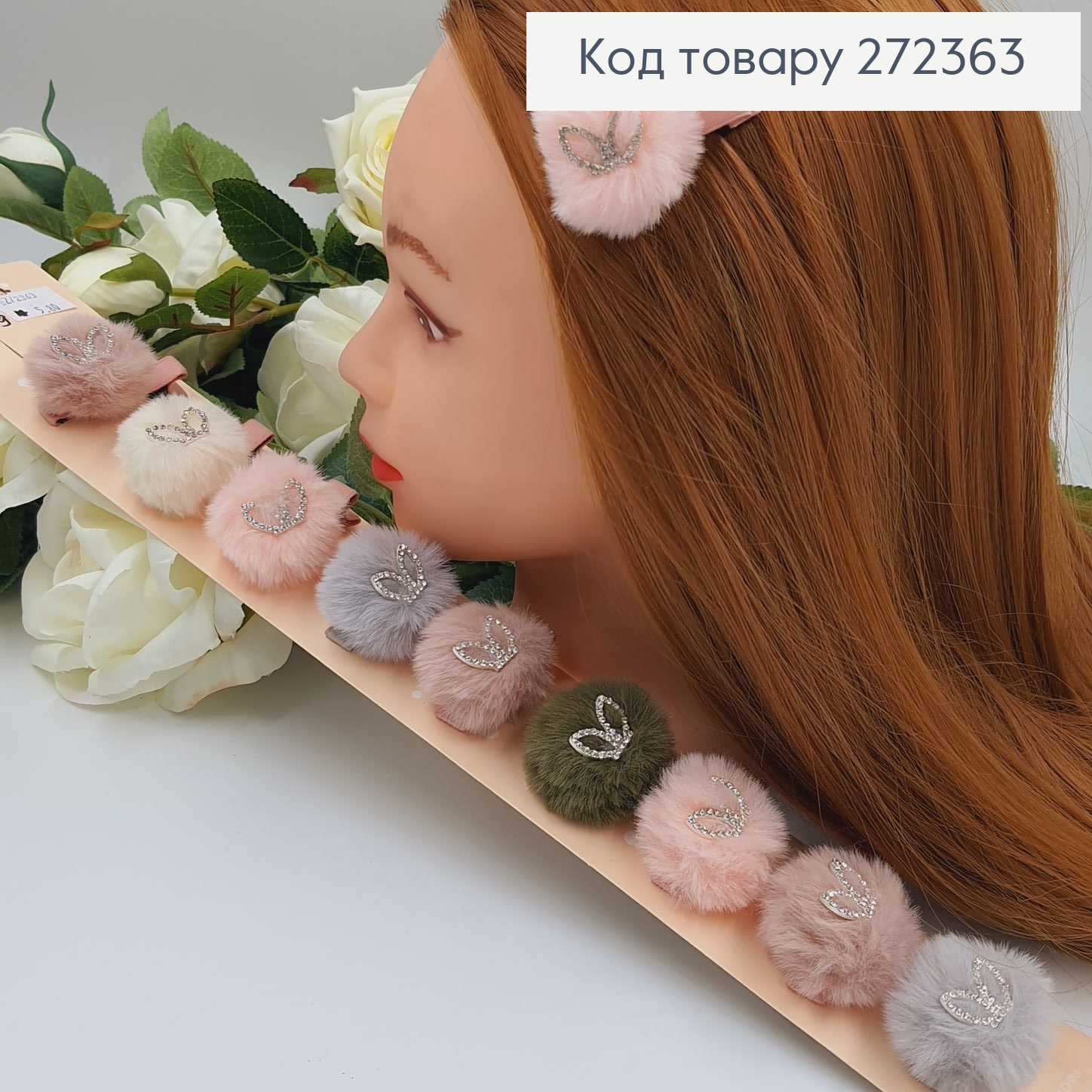 Набор заколка тик-так (20шт), "Сердечко" с Камешками, Пастельные цвета, заколка 4,5см, сердце 2,5см 271517 фото