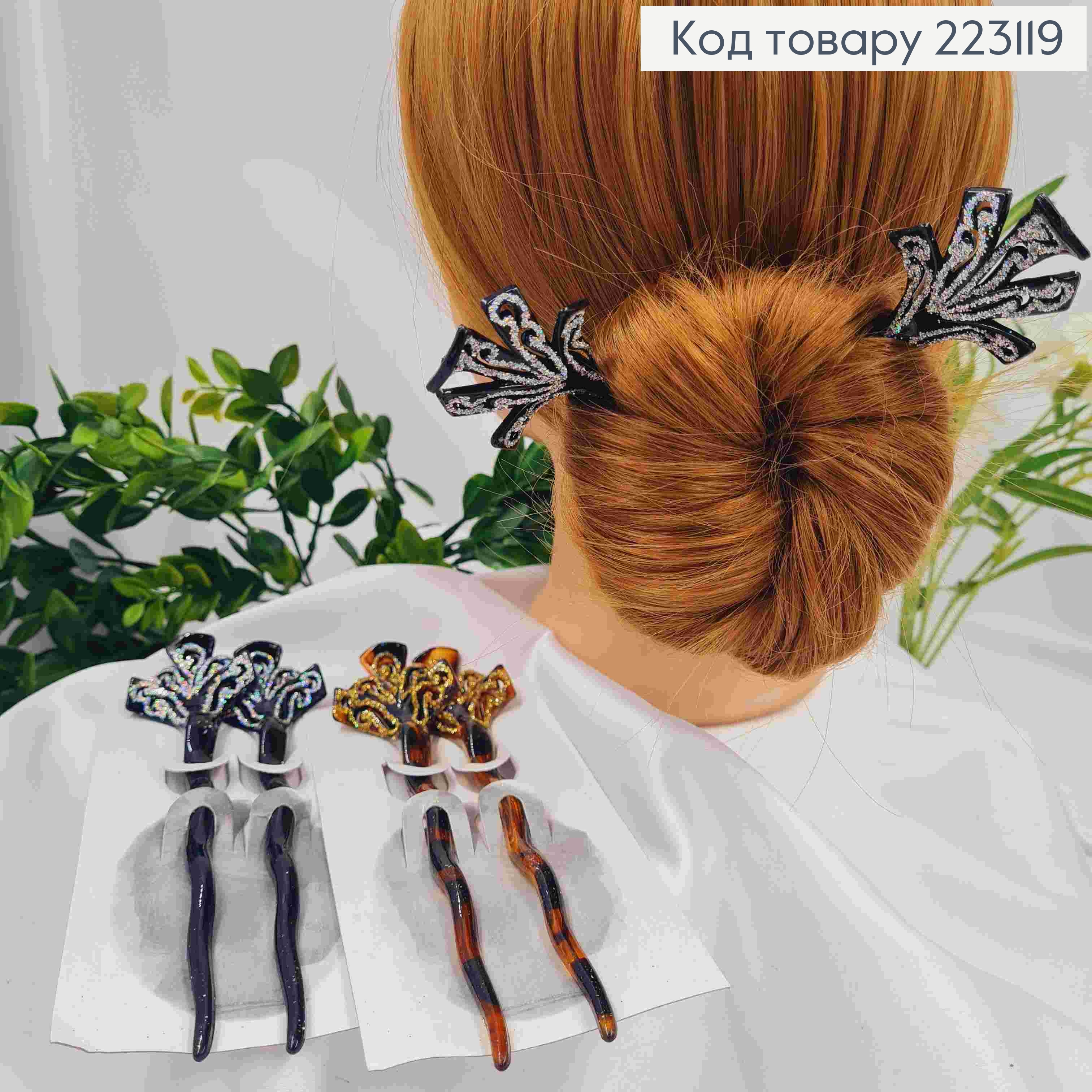 Заколка, Китайские палочки для волос с блестками, пластик, 17,5см, цвета в ассортименте, 2шт/уп