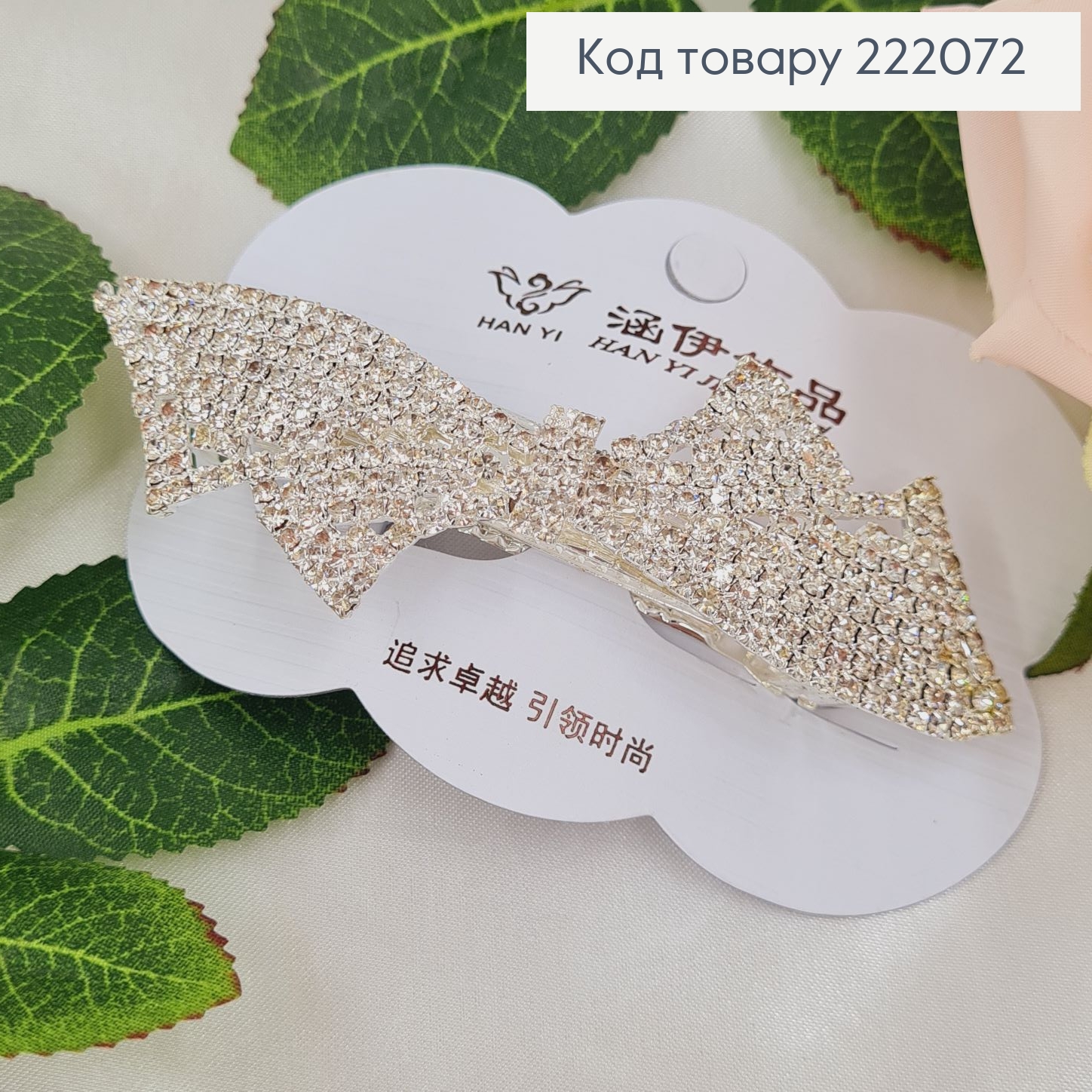 Заколка автоматик "Бантик" с блестящими камешками и цепочками, 6,5*6+9см, Серебряного цвета. 222169 фото