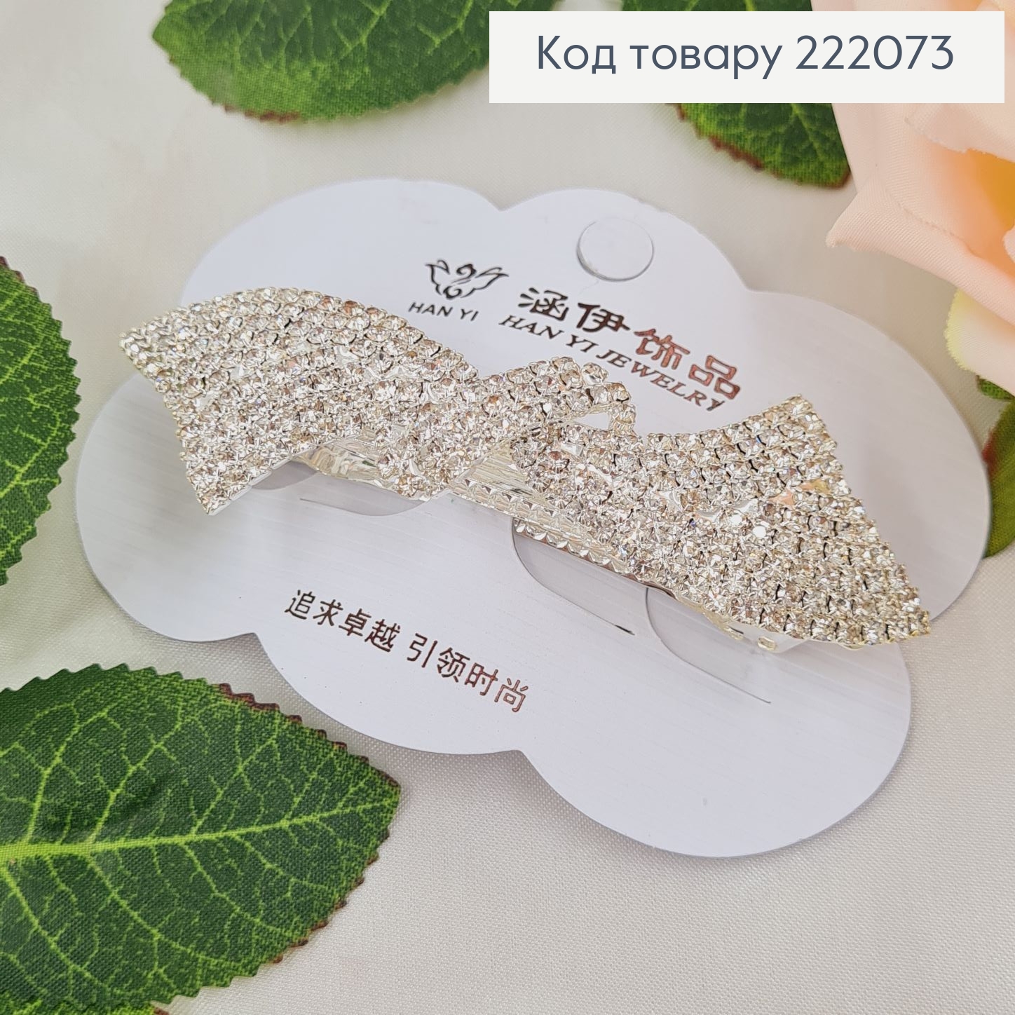 Заколка автоматик "Бантик" с блестящими камешками и цепочками, 6,5*6+9см, Серебряного цвета. 222169 фото