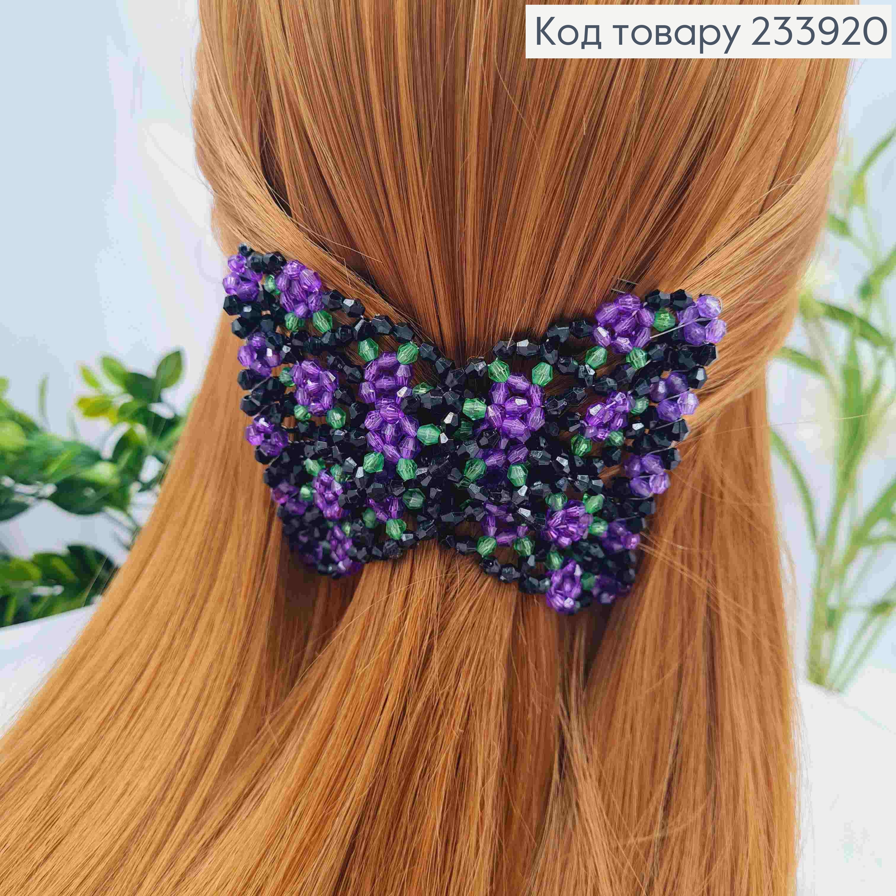 Заколка Монтера для волос черная с фиолетовыми цветочками.