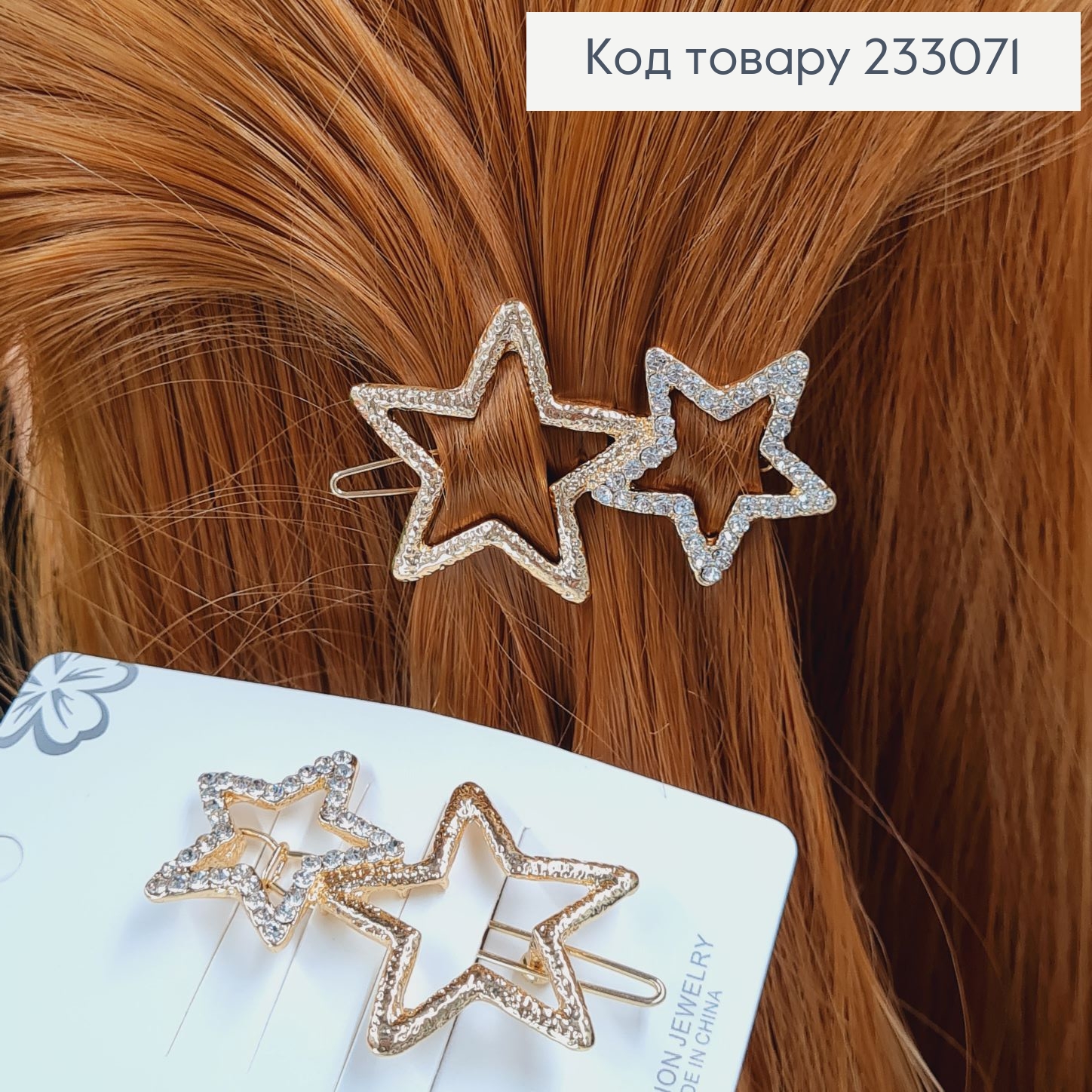 Заколка на чуб Две звезды, золотого цвета, 5см
