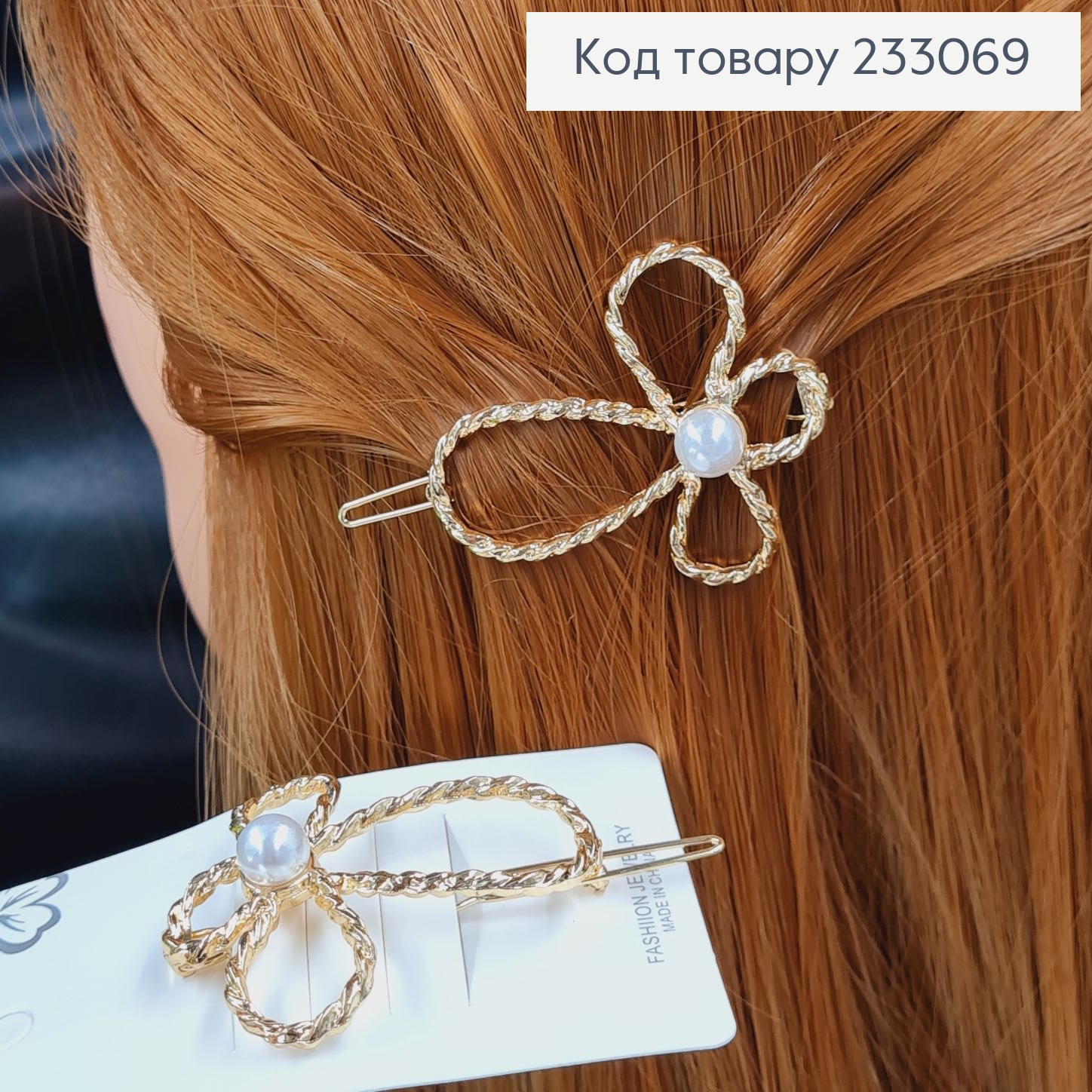 Заколка на чубчик Цветочек, золотого цвета,5см