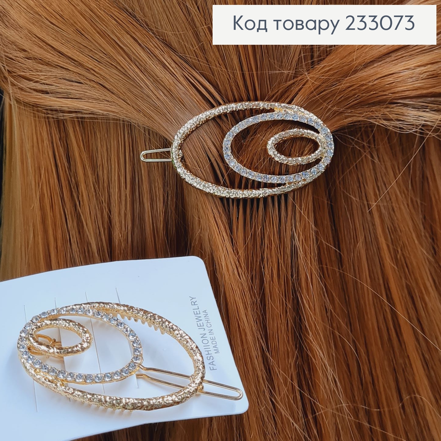 Набор: заколка Стрела (2шт/уп) с круглым блестящим камнем, 3,5см, Золотая/серебряная в ассортименте. 233156 фото