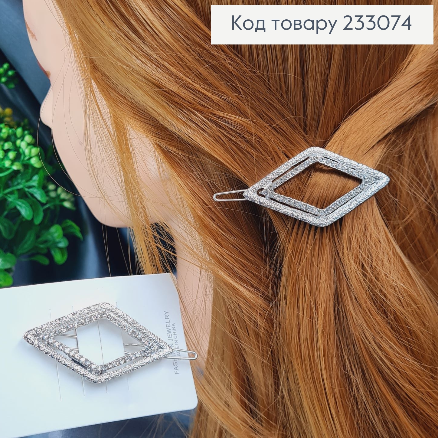Набор: заколка Стрела (2шт/уп) с блестящим Квадратным камнем, 3,5см, Золотая/Серебряная в ассортименте 233153 фото