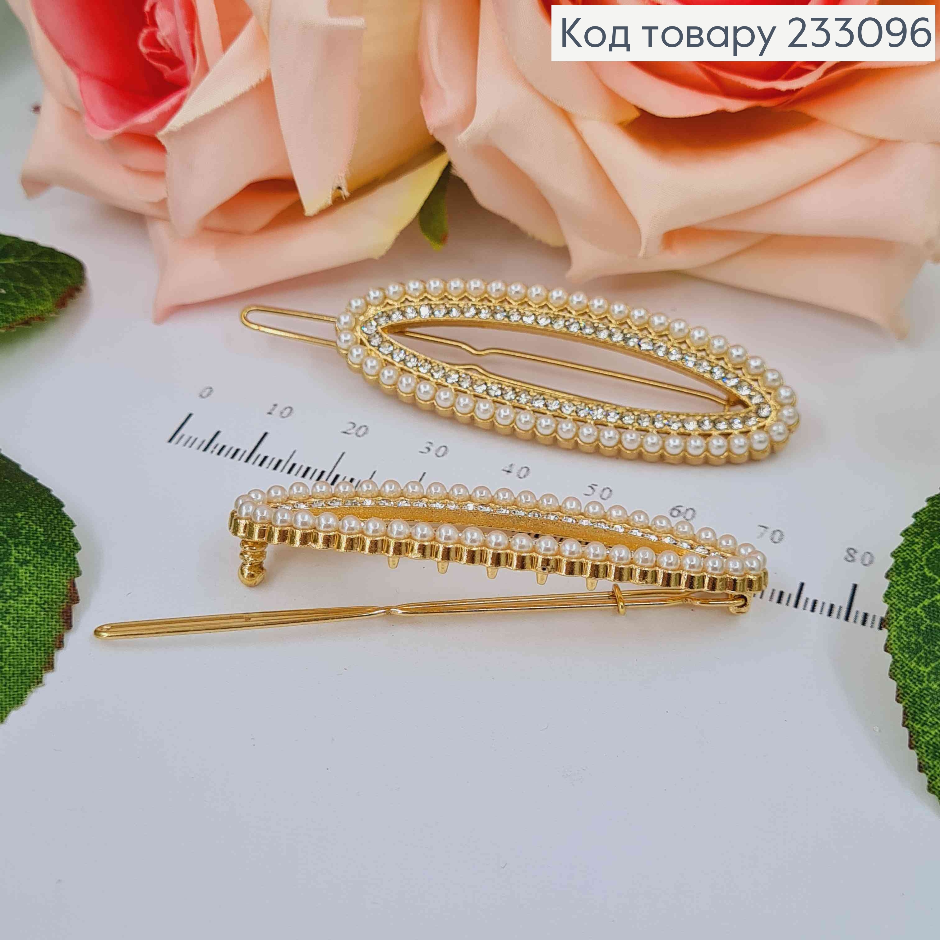 Заколка на зажимчике, овальная в камнях и жемчужинах, 7см