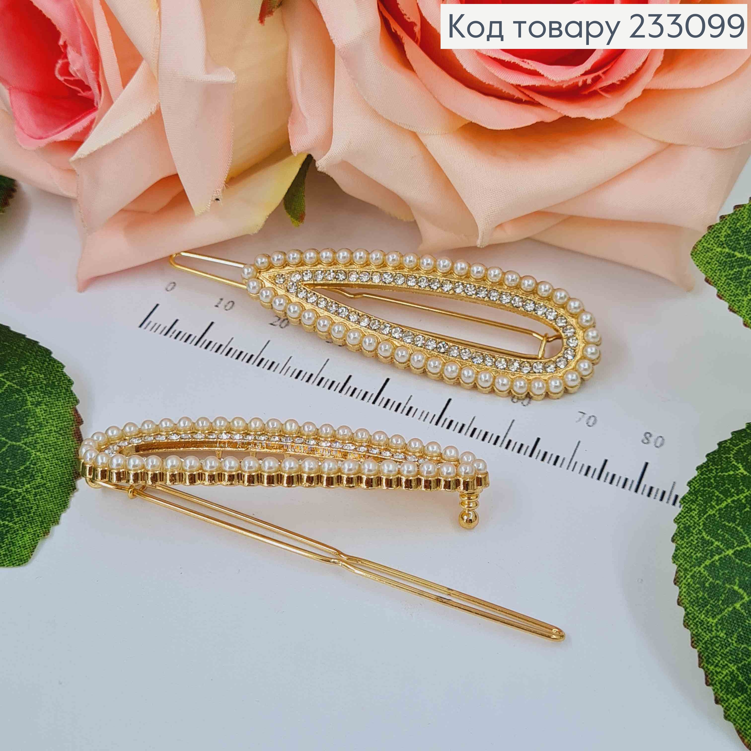 Заколка на зажимчике, в форме Капельки в камнях и жемчужинах, 7см