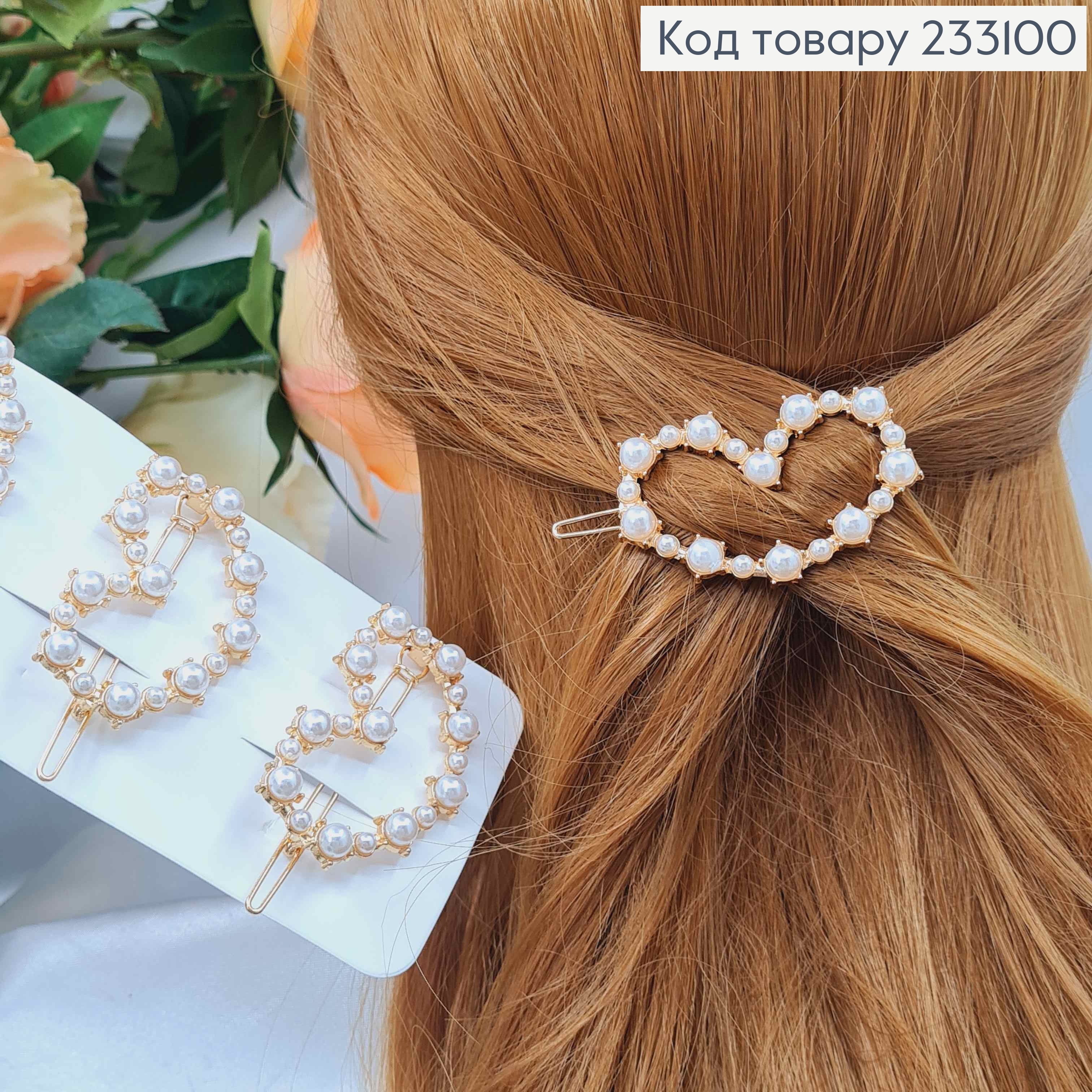 Заколка на зажимчике, в форме Сердечка, с жемчужками, 6см