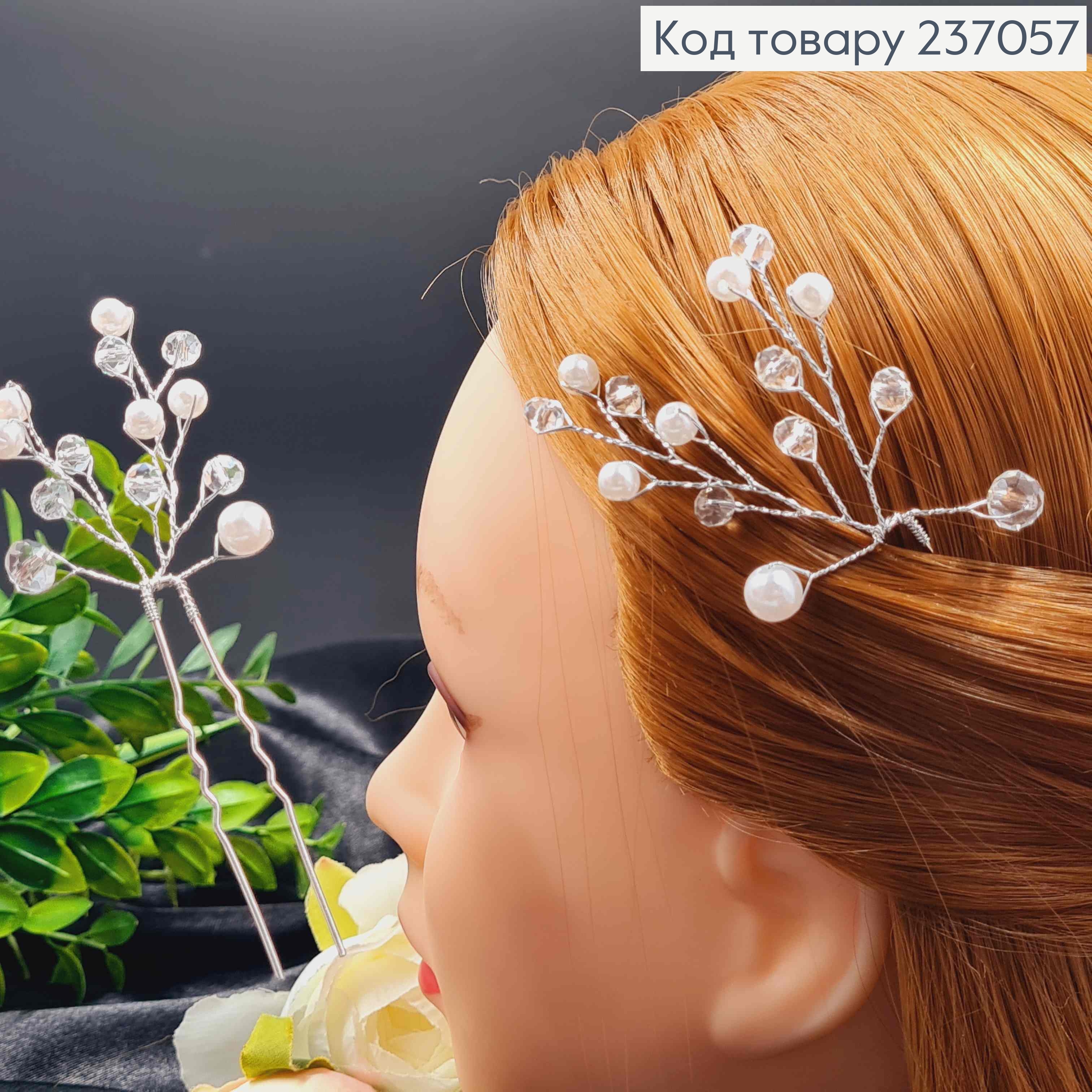 Заколка шпилька-рогач с перламутровыми бусинами, 6+4,5см 237061 фото