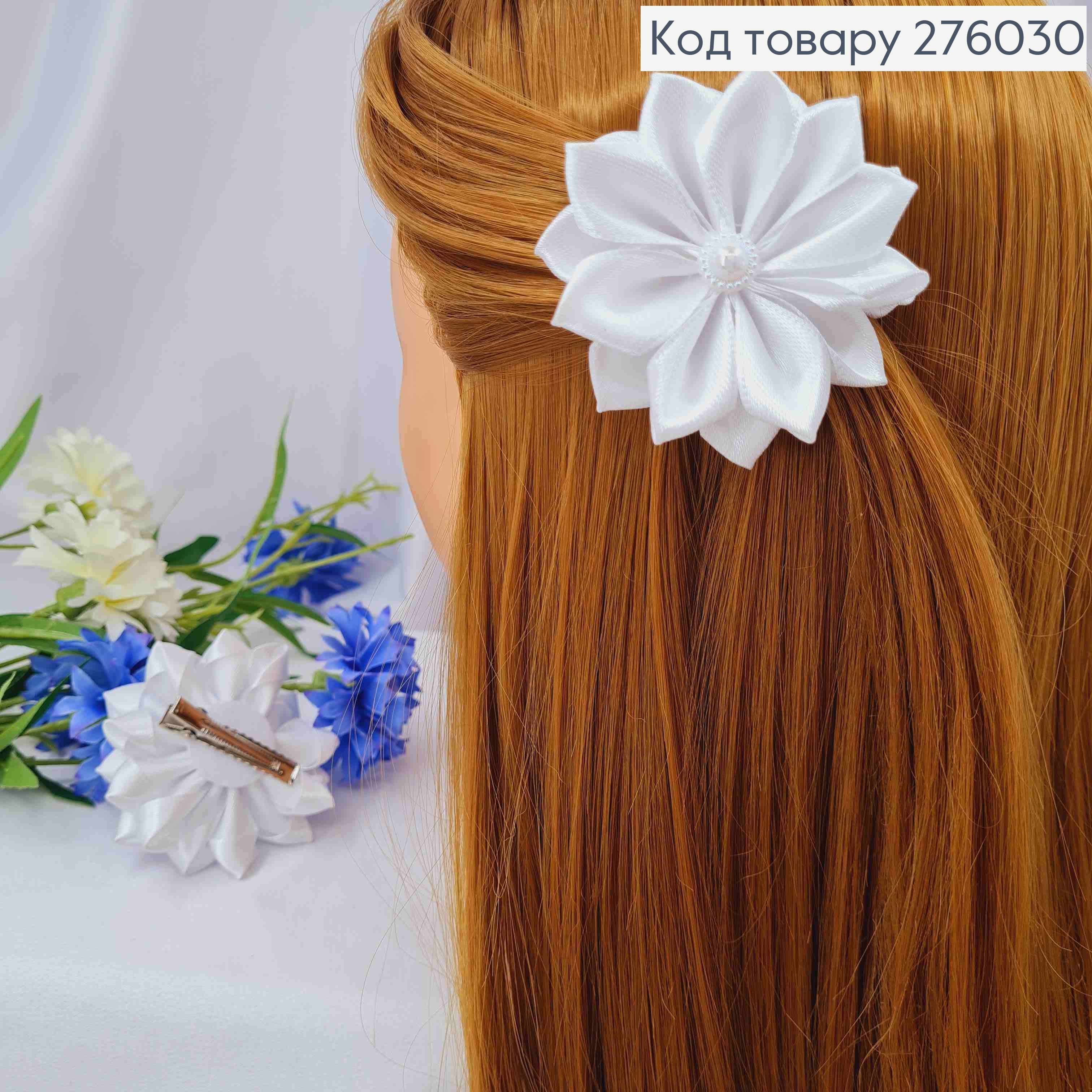 Бант БЕЛОГО цвета со стразами, на заколке 5,5, ткань атлас, размер 10*6,5см, Украина. 276163 фото