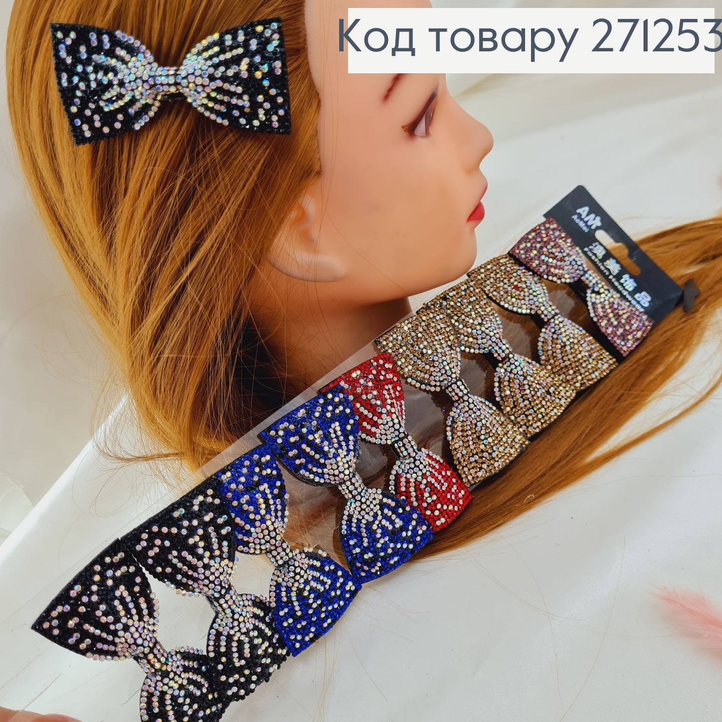 Набор заколка тик-так (20шт), "Бантик" с Камешками, Пастельные цвета, заколка 4,7см, бантик 2,5см. 271518 фото