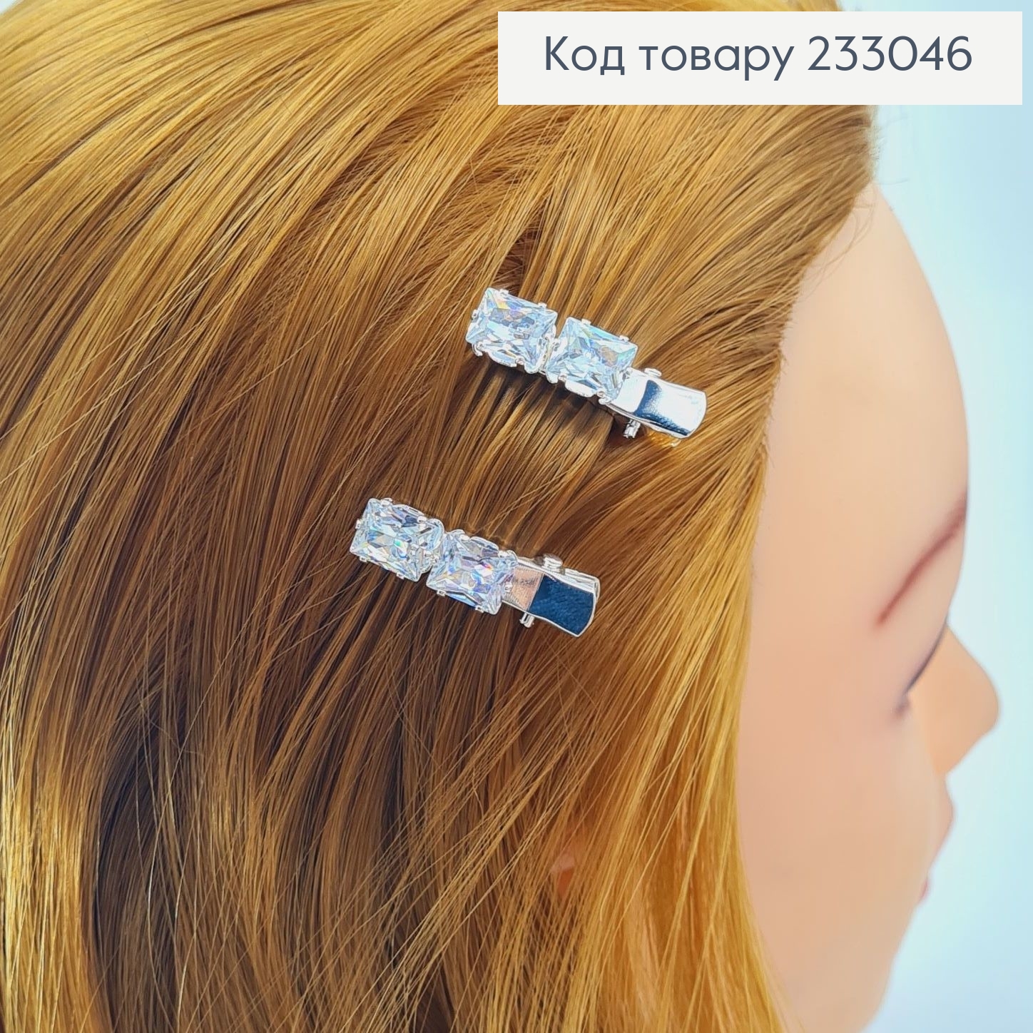 Заколка Стрела мала 3 см серебряная в камнях квадрат 2 шт/уп