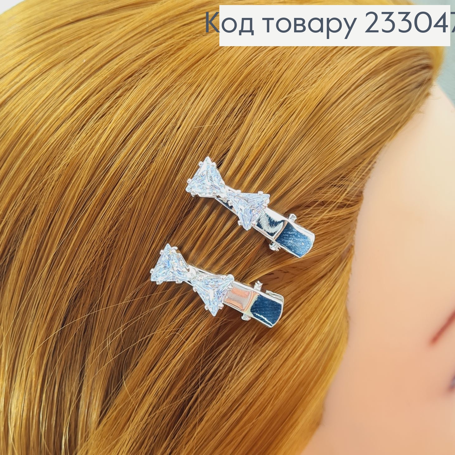 Заколка Стрела мала 3 см серебряная в камнях ктреугольник 2 шт/уп