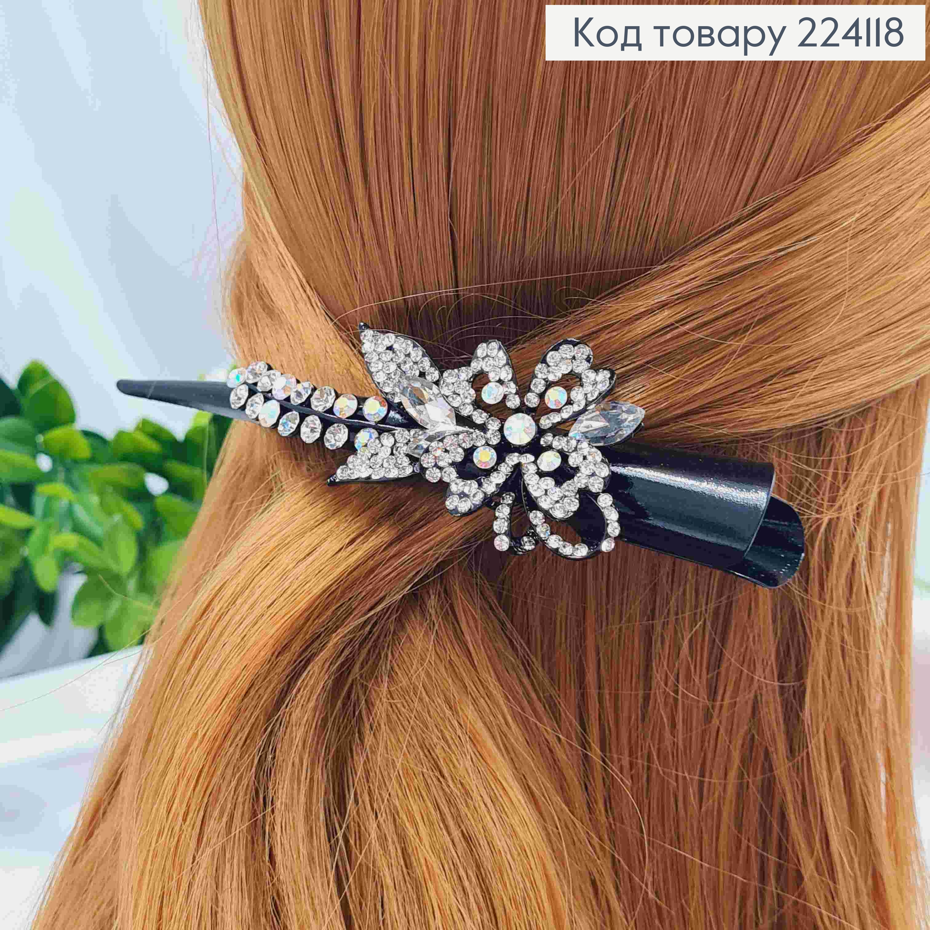 Заколка стрела металл с цветком в блестящих камнях, серебряного цвета, 13см. 224169 фото