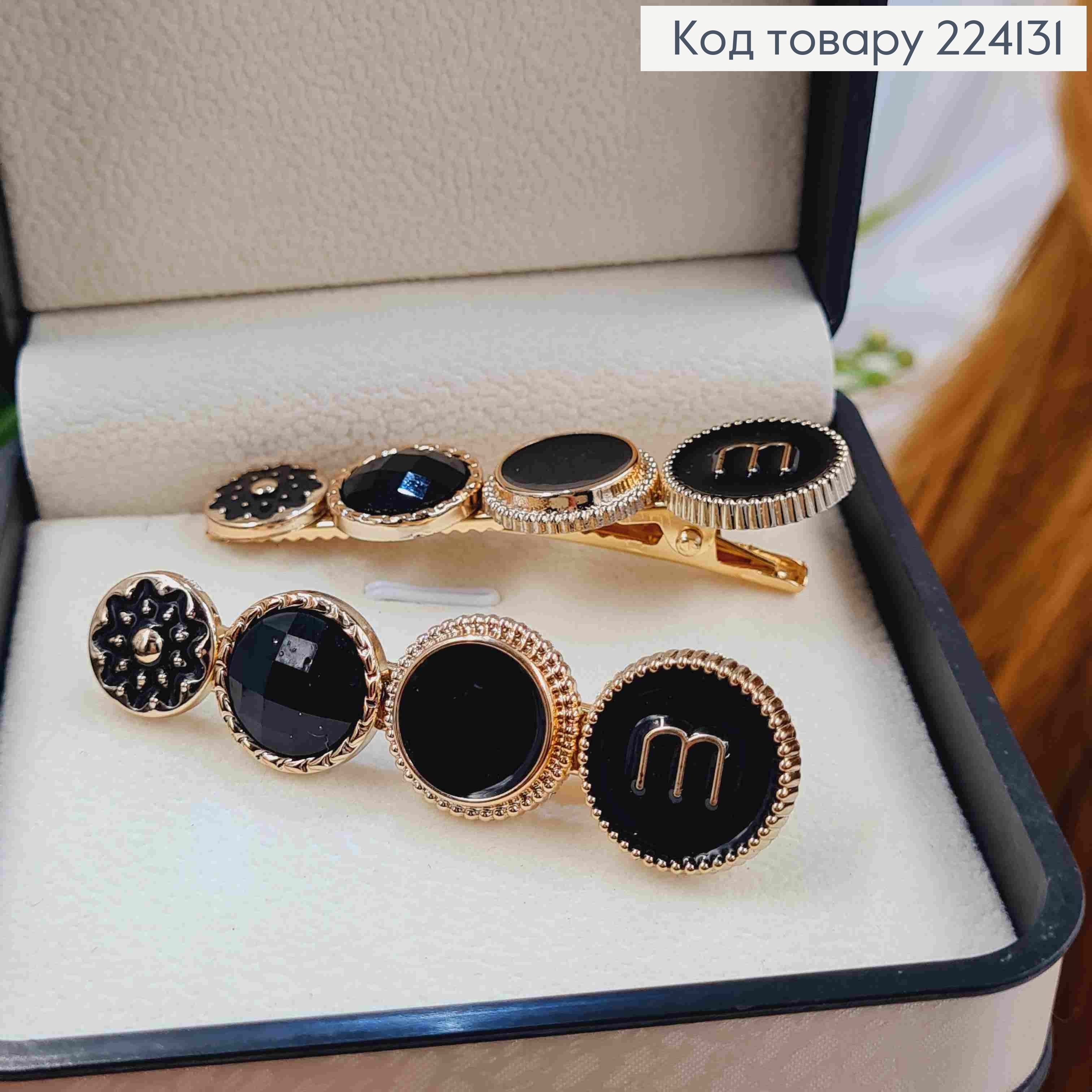 Заколка стрела(2шт), металл, с четырьмя Монетками с Черной эмалью, 6см, Золотого цвета, 2шт/уп